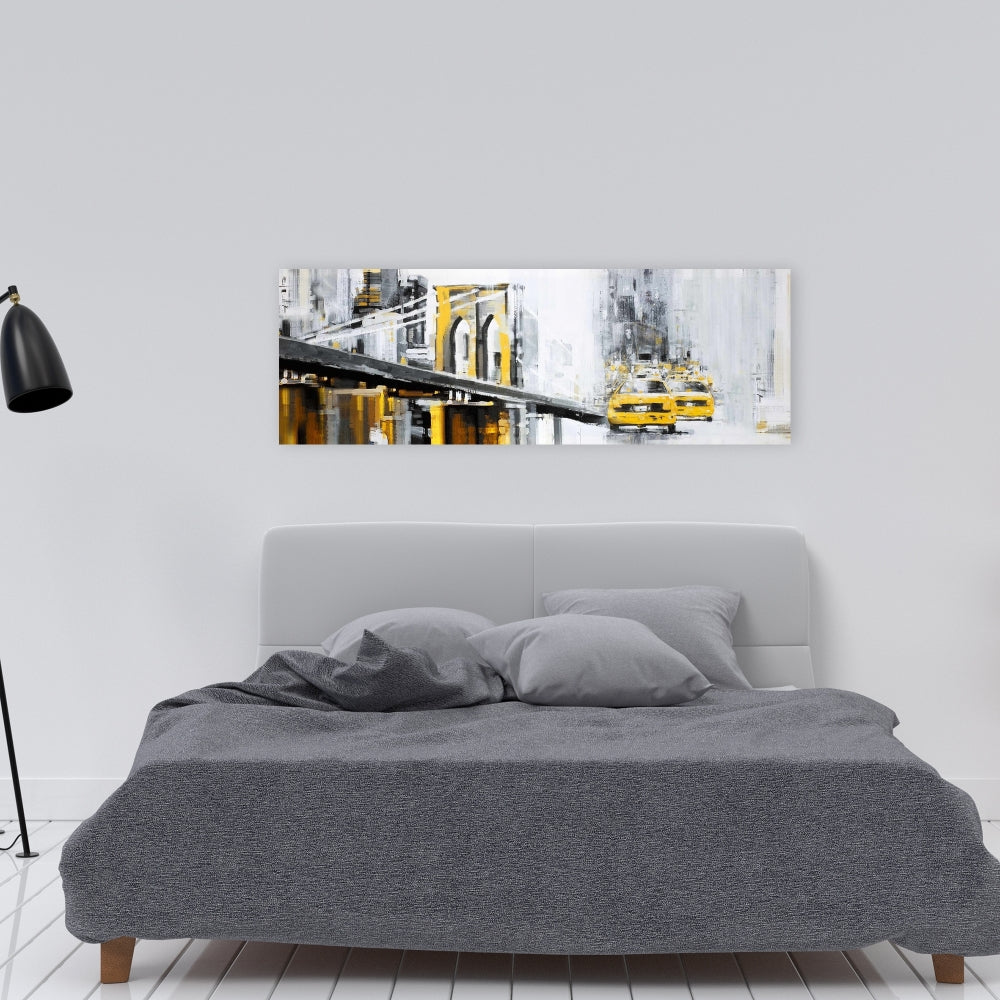 Toile Pont de Brooklyn jaune avec taxis - Décor gris industriel