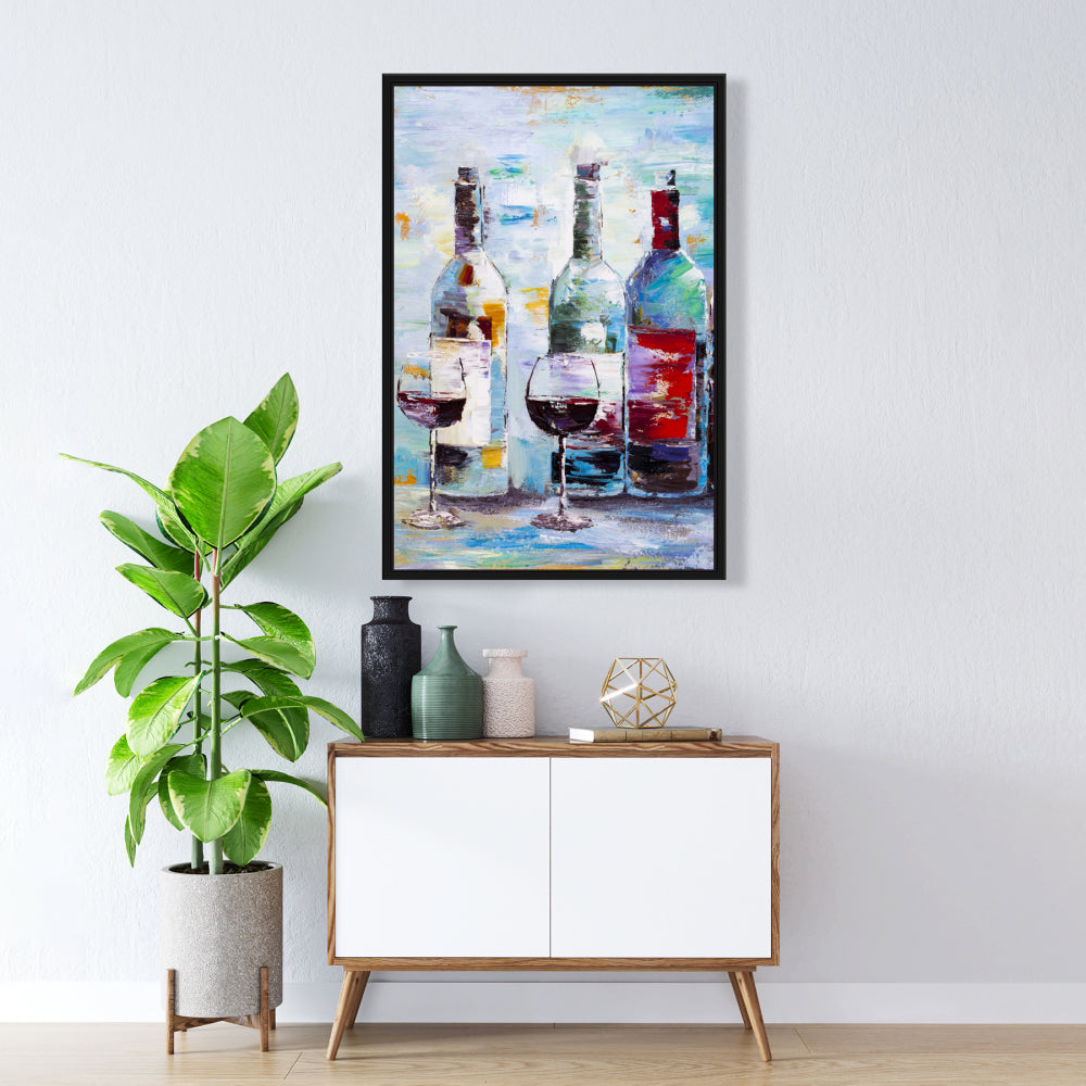 Sublimez votre décoration intérieure avec notre toile encadrée « Cuisine et gastronomie » représentant l'œuvre captivante « Quatre bouteilles de vin ». Idéale pour les amateurs de vin et les passionnés de cuisine, cette élégante pièce apporte une touche de sophistication à toute cuisine ou salle à manger. La représentation saisissante de bouteilles de vin aux teintes vives s'intègre aussi bien aux intérieurs modernes que traditionnels. Imprimée sur une toile de haute qualité et encadrée avec soin, cette œuvre garantit durabilité et finition haut de gamme. Que vous rénoviez votre intérieur ou cherchiez le cadeau idéal, cette toile encadrée est un ajout intemporel qui séduira les amateurs de vin. Facile à fixer au mur, elle transformera votre espace sans effort. Sublimez votre décoration intérieure tout en célébrant l'art de la gastronomie avec cette œuvre exquise.