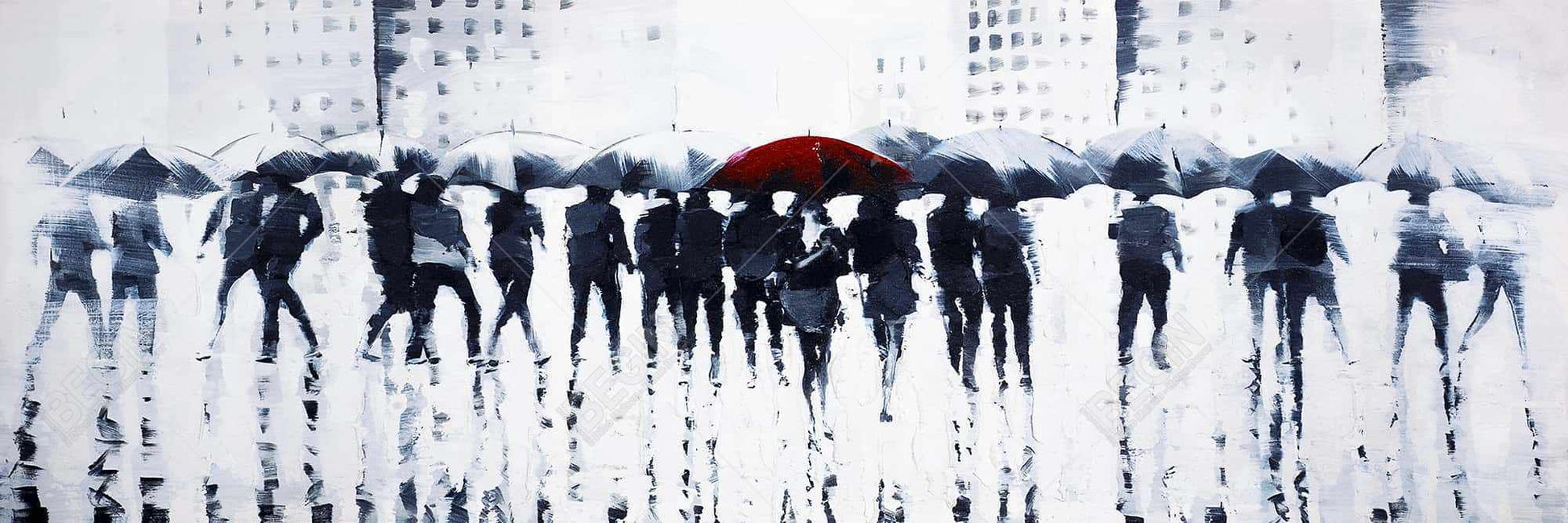 Silhouettes marchant sous la pluie - Décoration sur toile encadrée pour chambre bleue