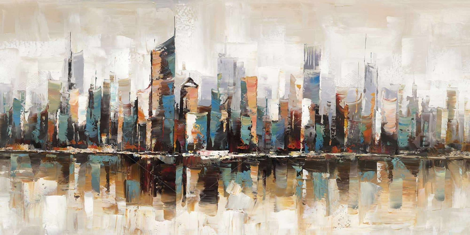 Toile de bâtiments abstraits | Décoration de chambre industrielle texturée