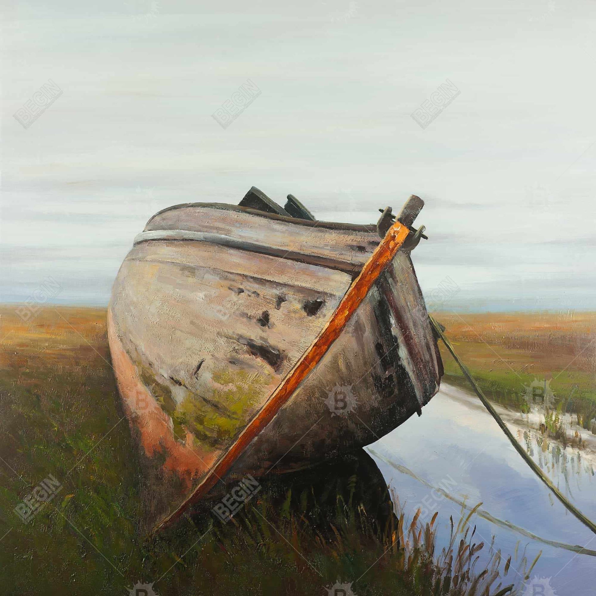 Toile de chambre contemporaine | Vieux bateau abandonné dans un marais