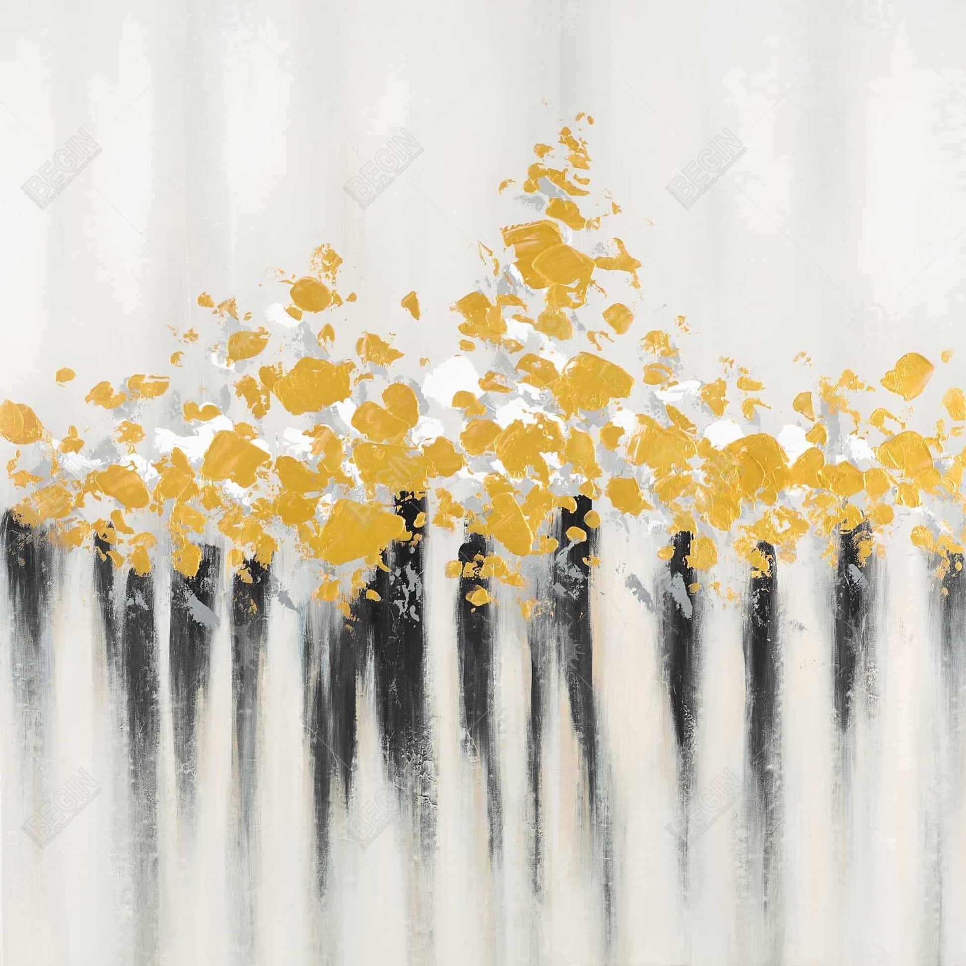 Toile abstraite à fleurs dorées | Décoration murale moderne pour chambre à coucher