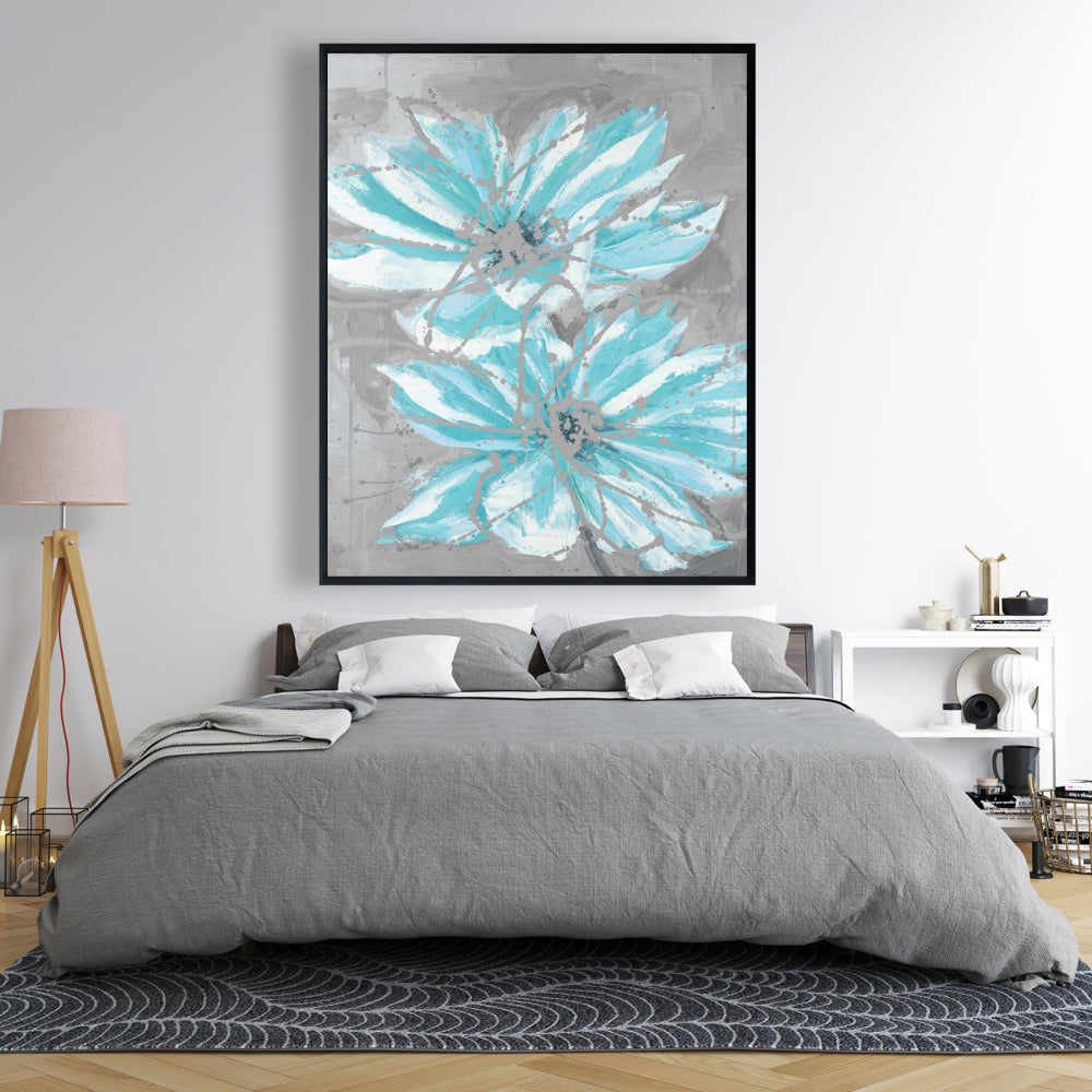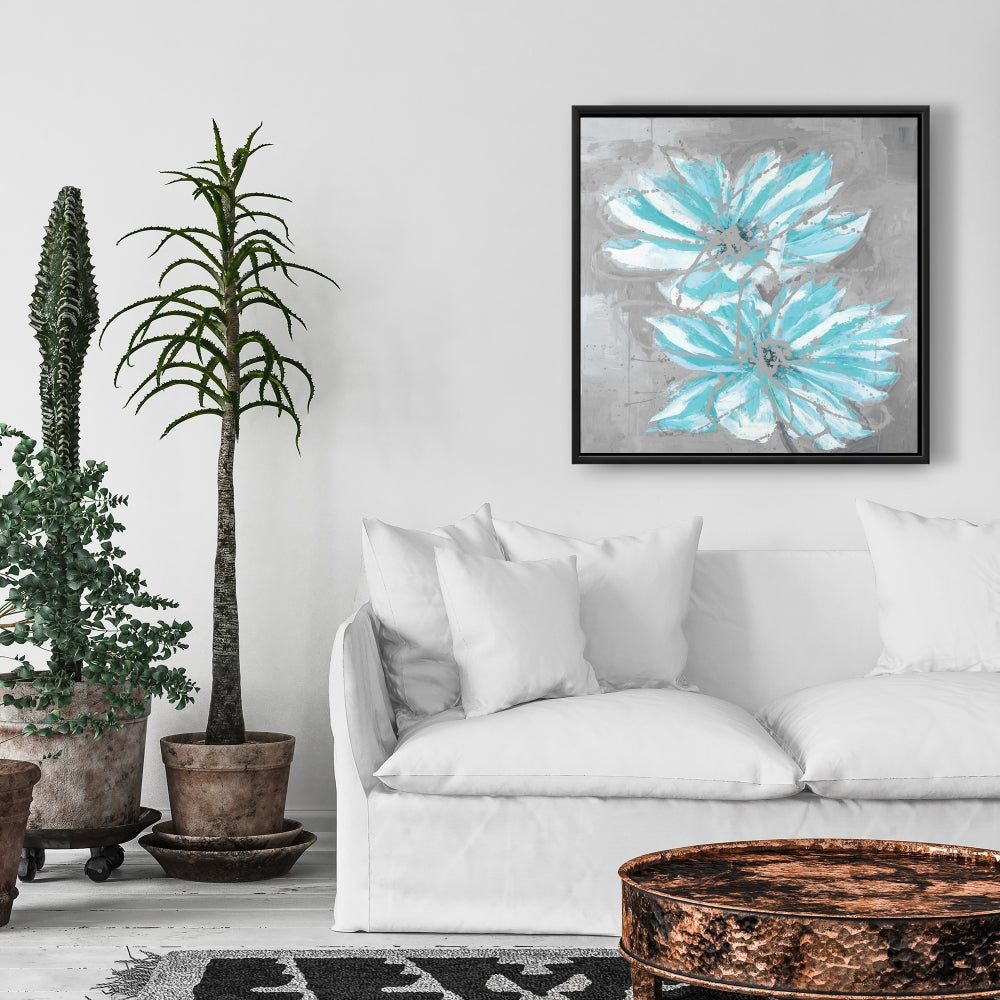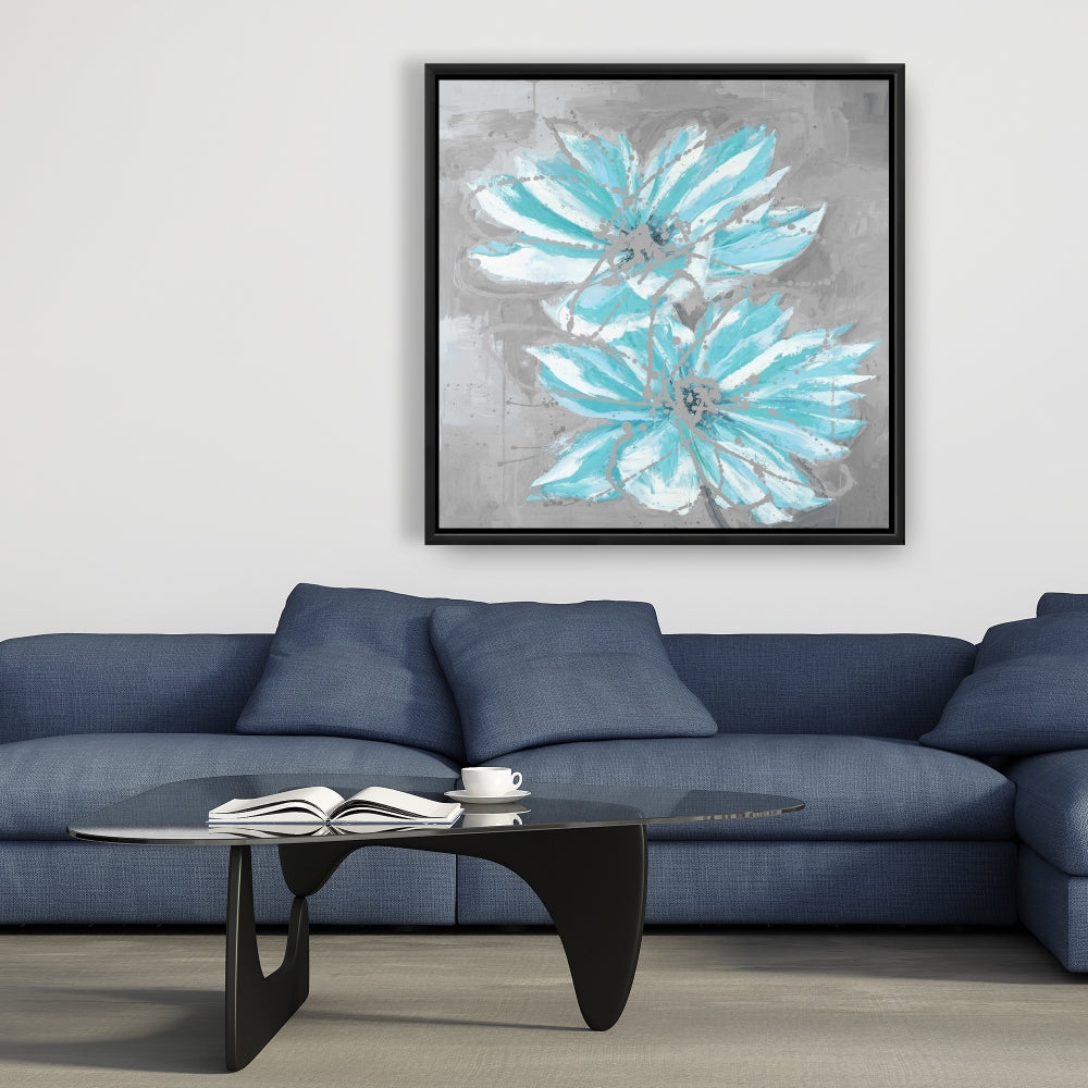 Toile florale contemporaine - Deux petites fleurs bleues abstraites