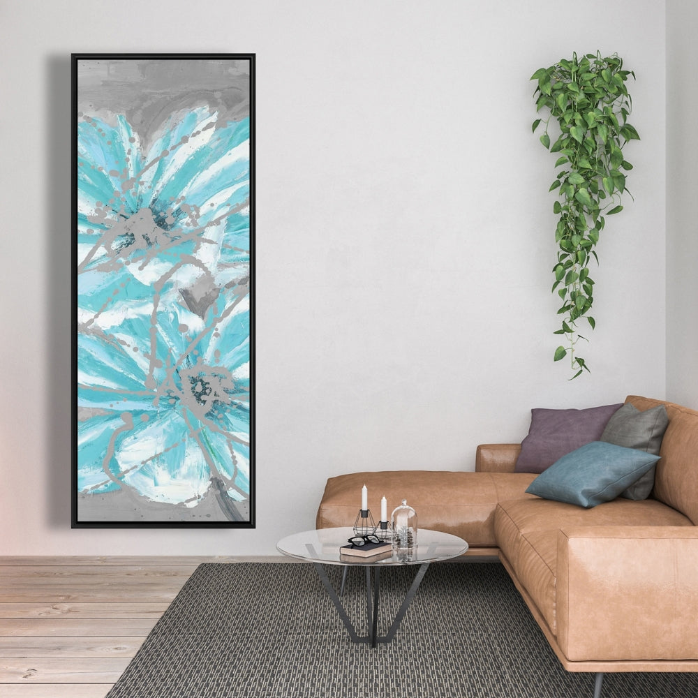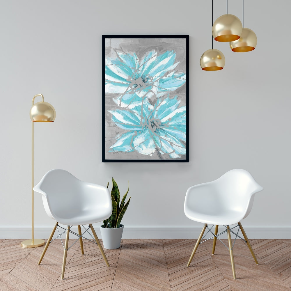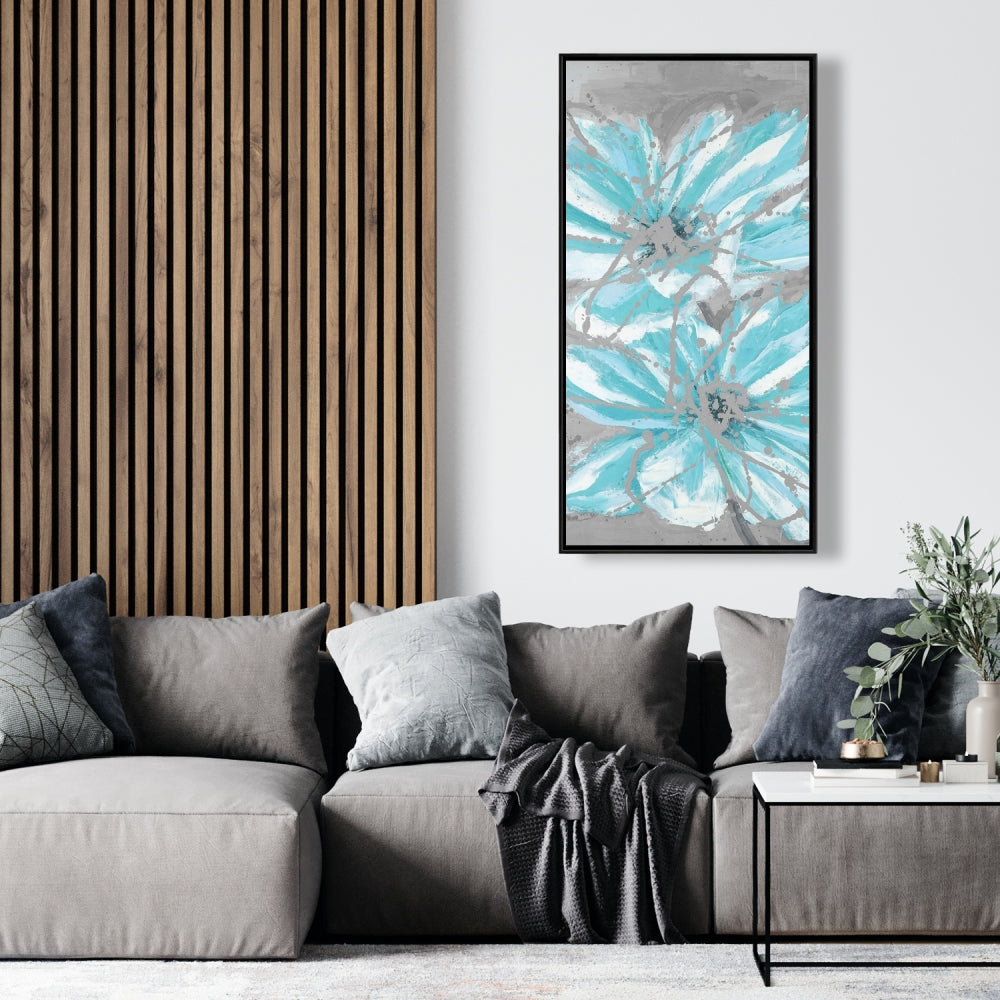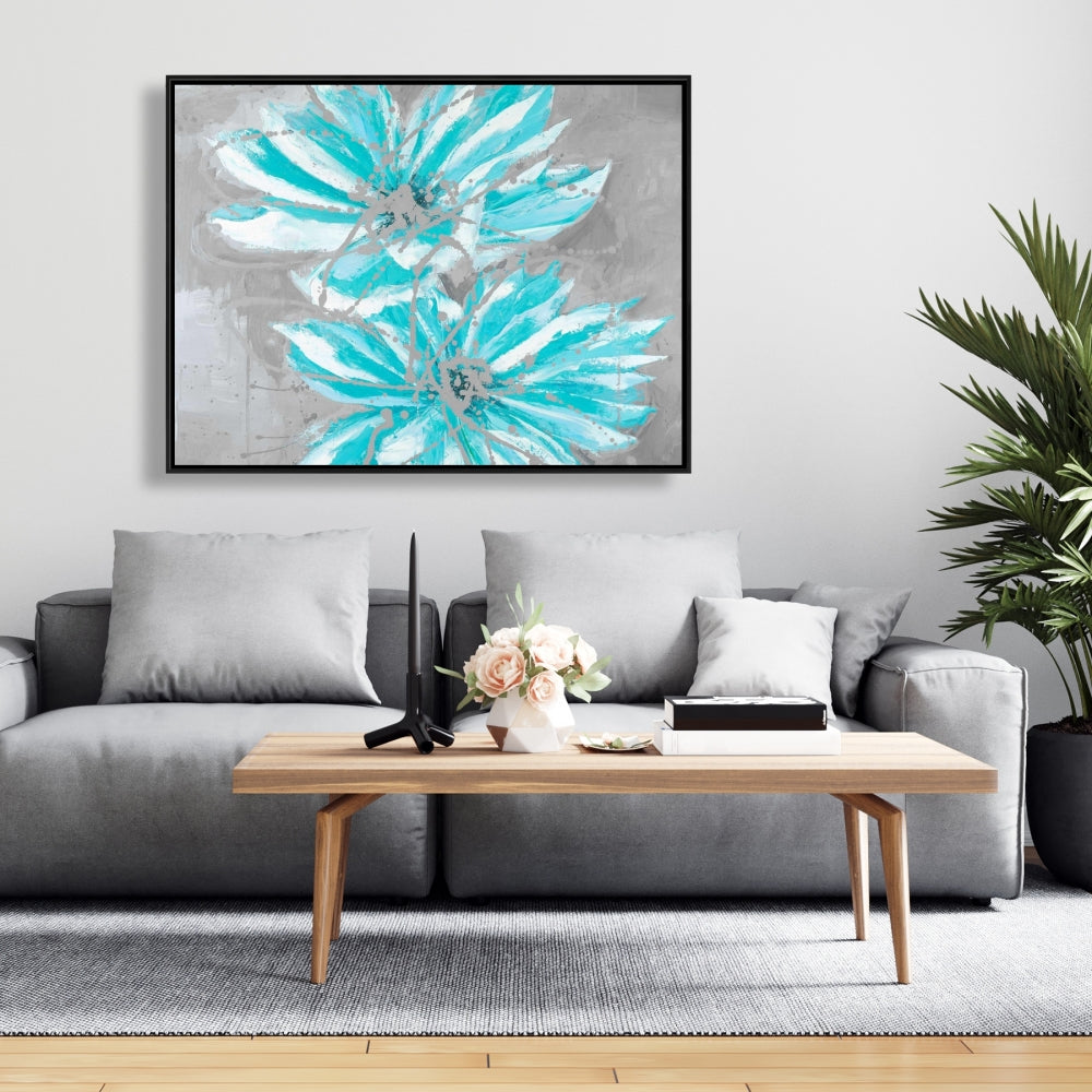 Toile florale contemporaine - Deux petites fleurs bleues abstraites