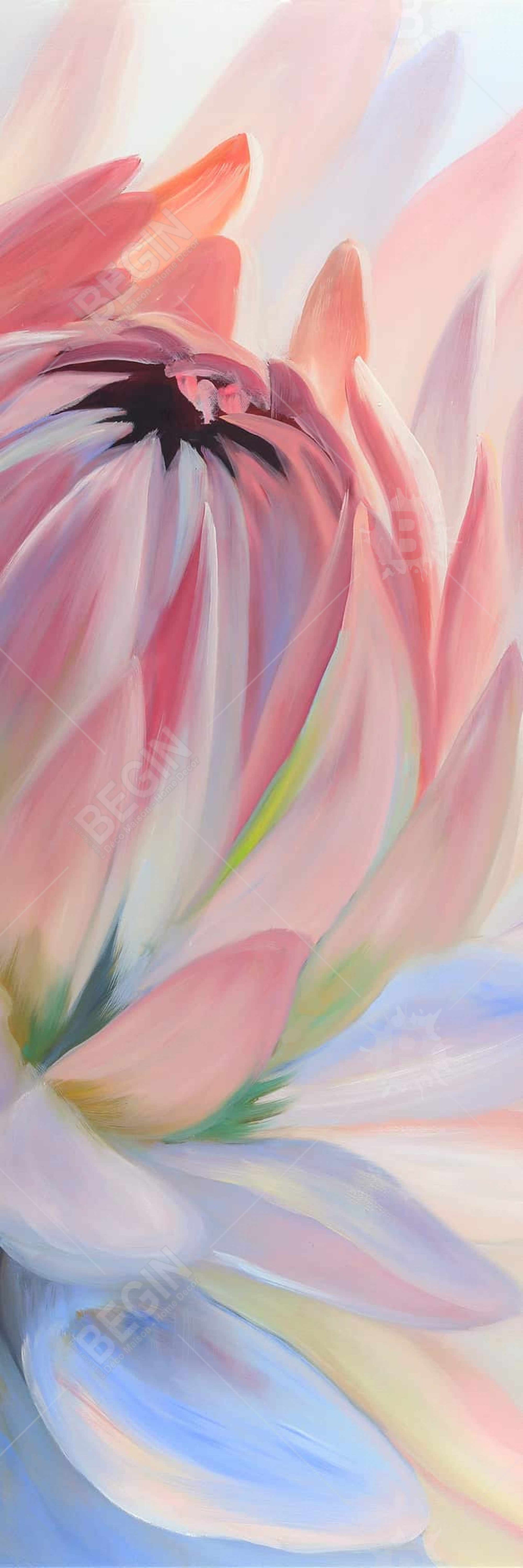 Toile de fleur de lotus pastel | Décoration botanique encadrée bleue