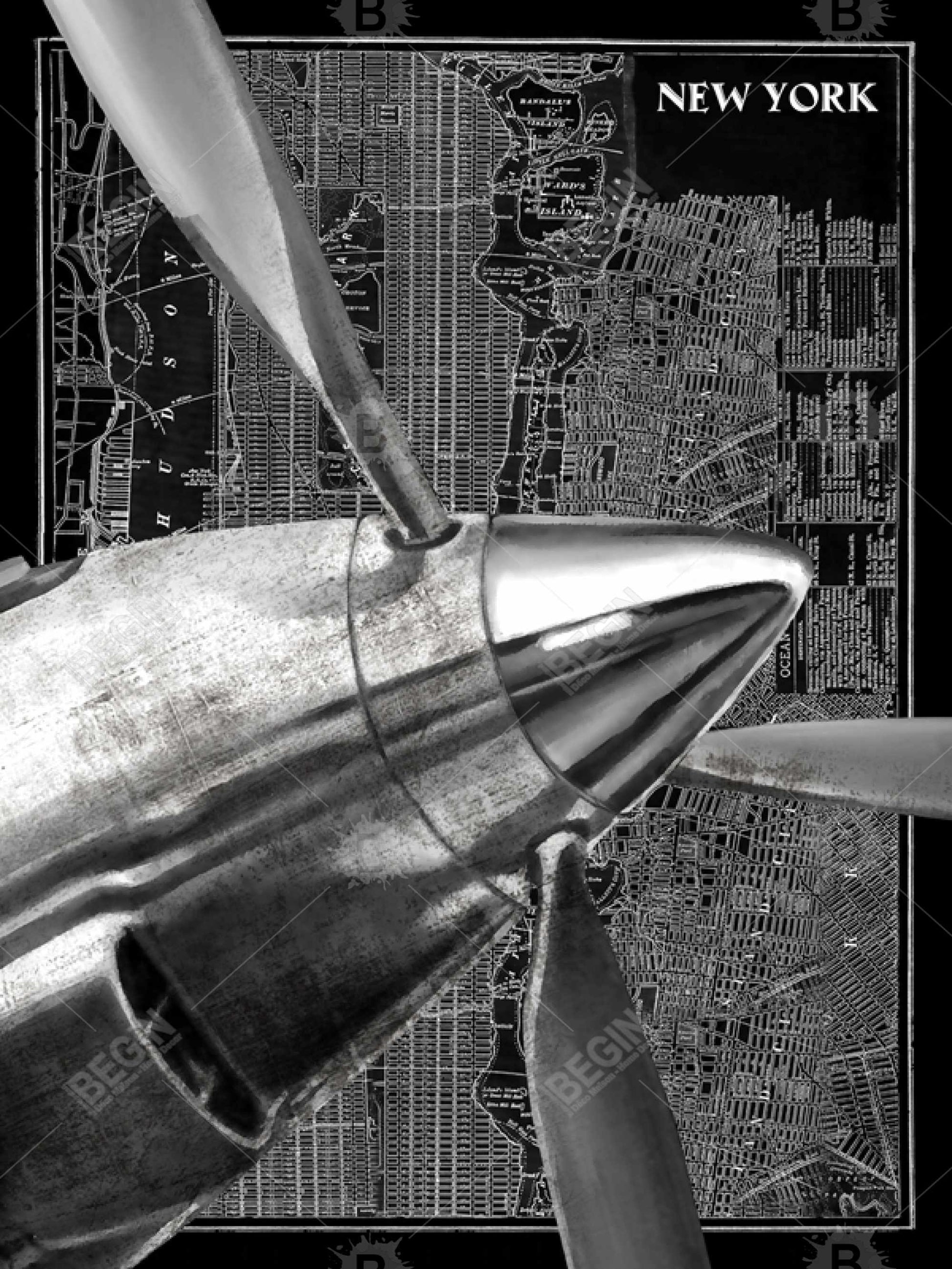Toile « Avion au-dessus de New York » – Décoration murale moderne encadrée grise