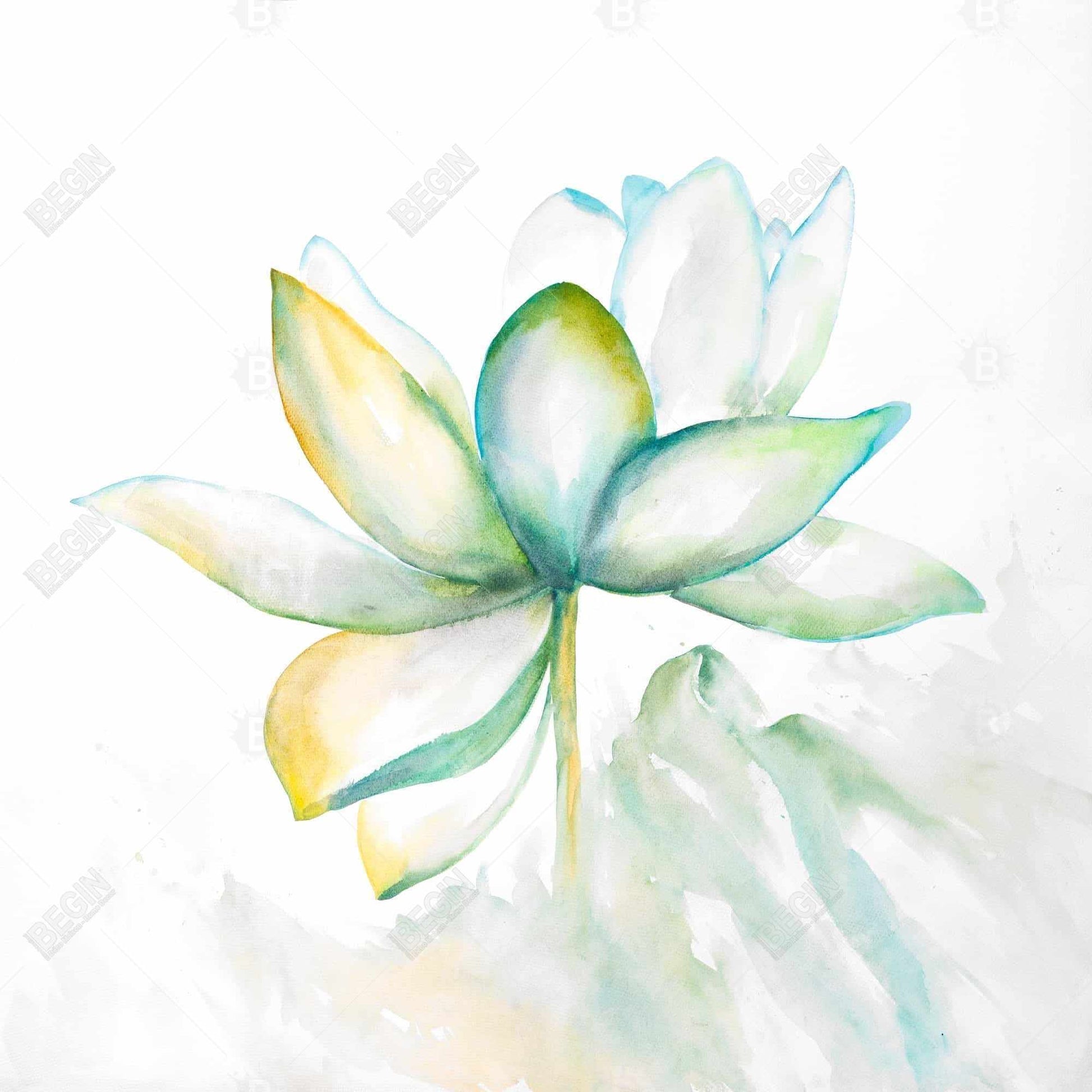 Fleur de lotus abstraite | Décoration murale botanique verte sur toile