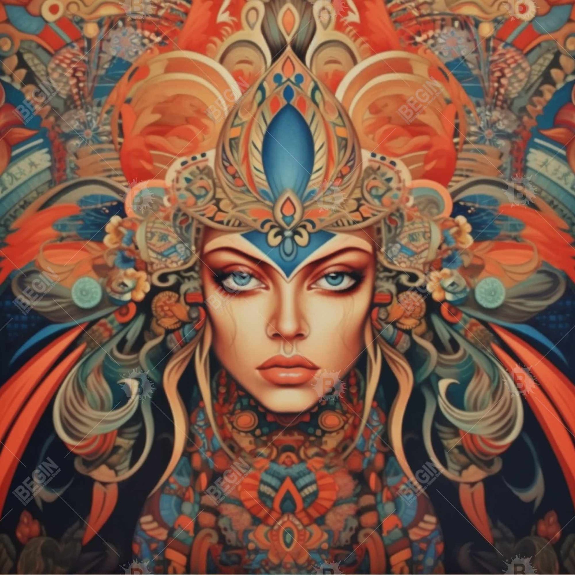 Toile bleue abstraite représentant une déesse antique - Décoration d'intérieur encadrée