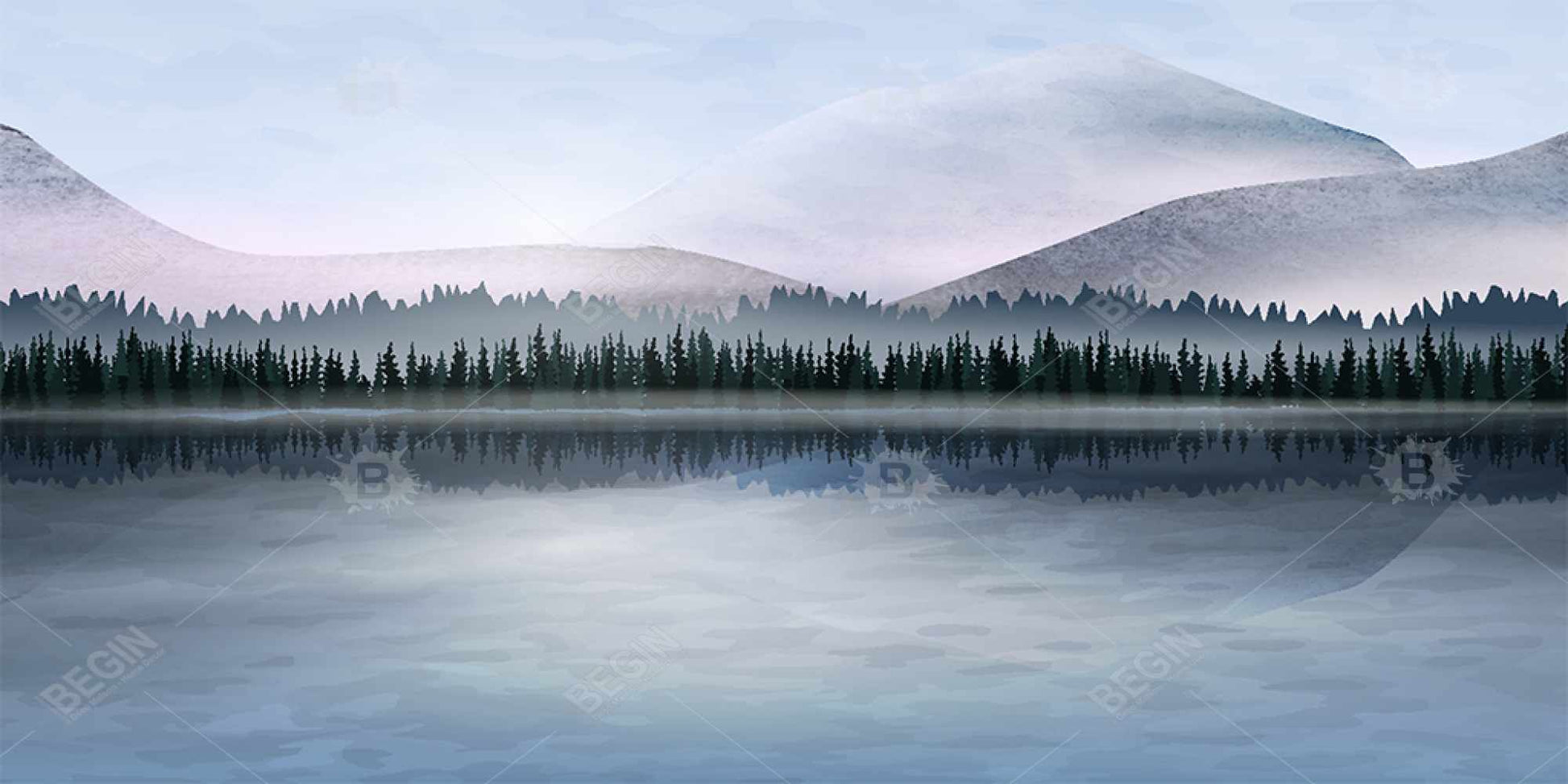 Toile encadrée Paysage bleu de la forêt lointaine | Décoration de chambre