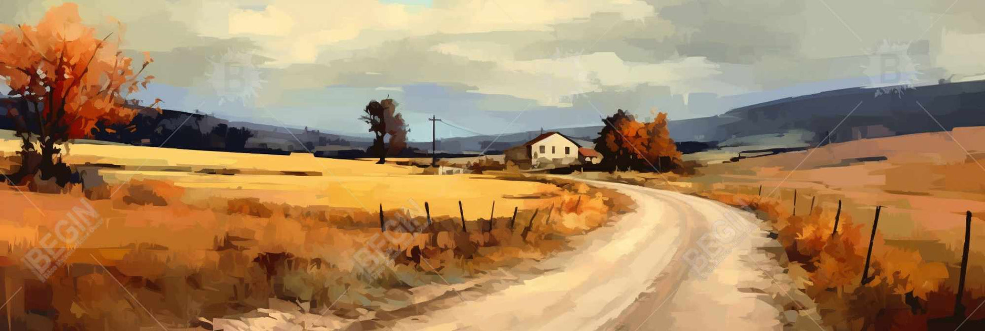 Toile encadrée « Chemin de campagne » – Décoration de salon avec paysages blancs