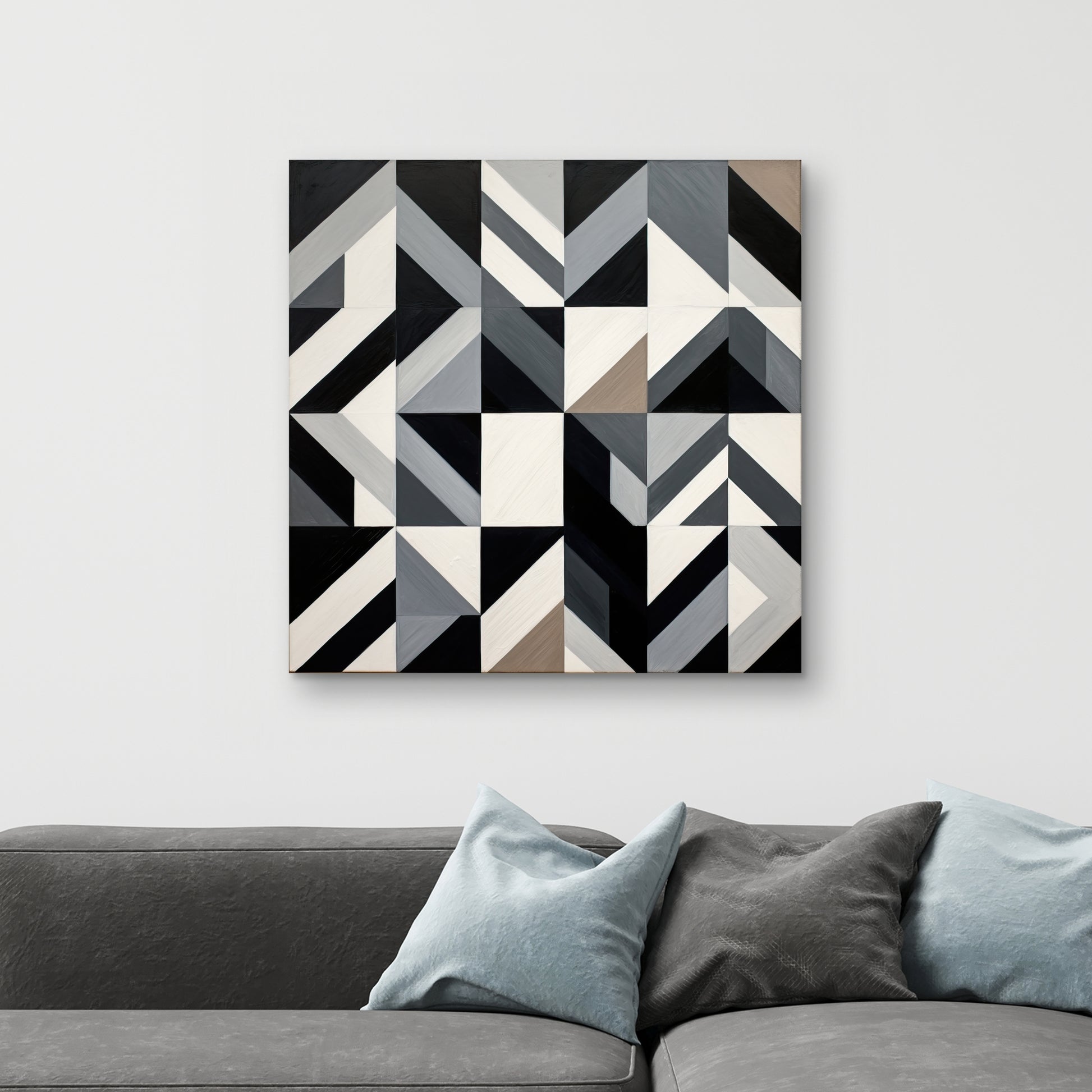 Toile minimaliste aux formes brunes quadrillées - Décoration d'intérieur moderne