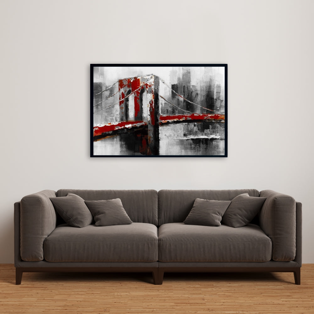 Toile encadrée abstraite du pont de Brooklyn - Décoration d'intérieur contemporaine