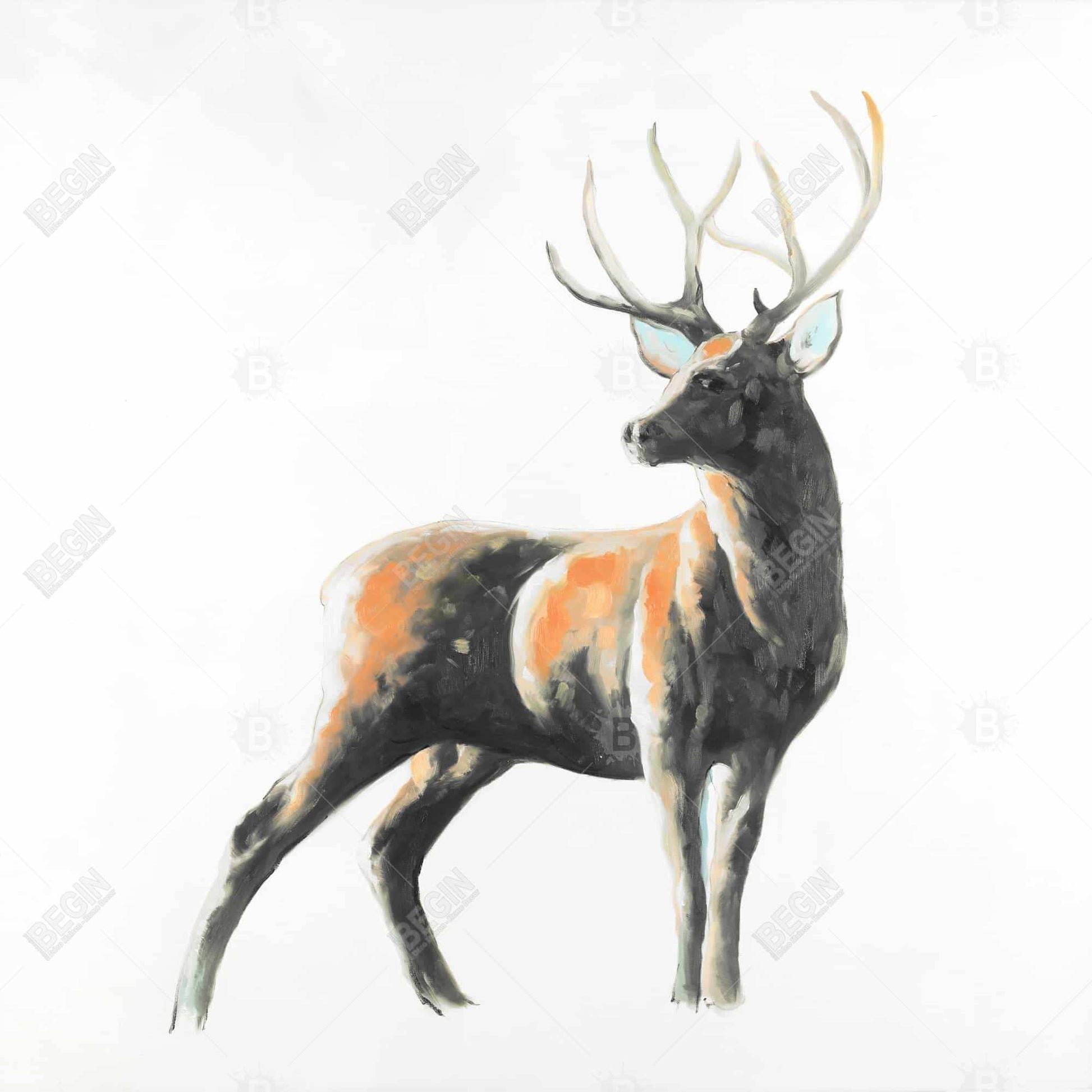 Toile encadrée abstraite représentant un cerf | Décoration murale avec animaux bruns