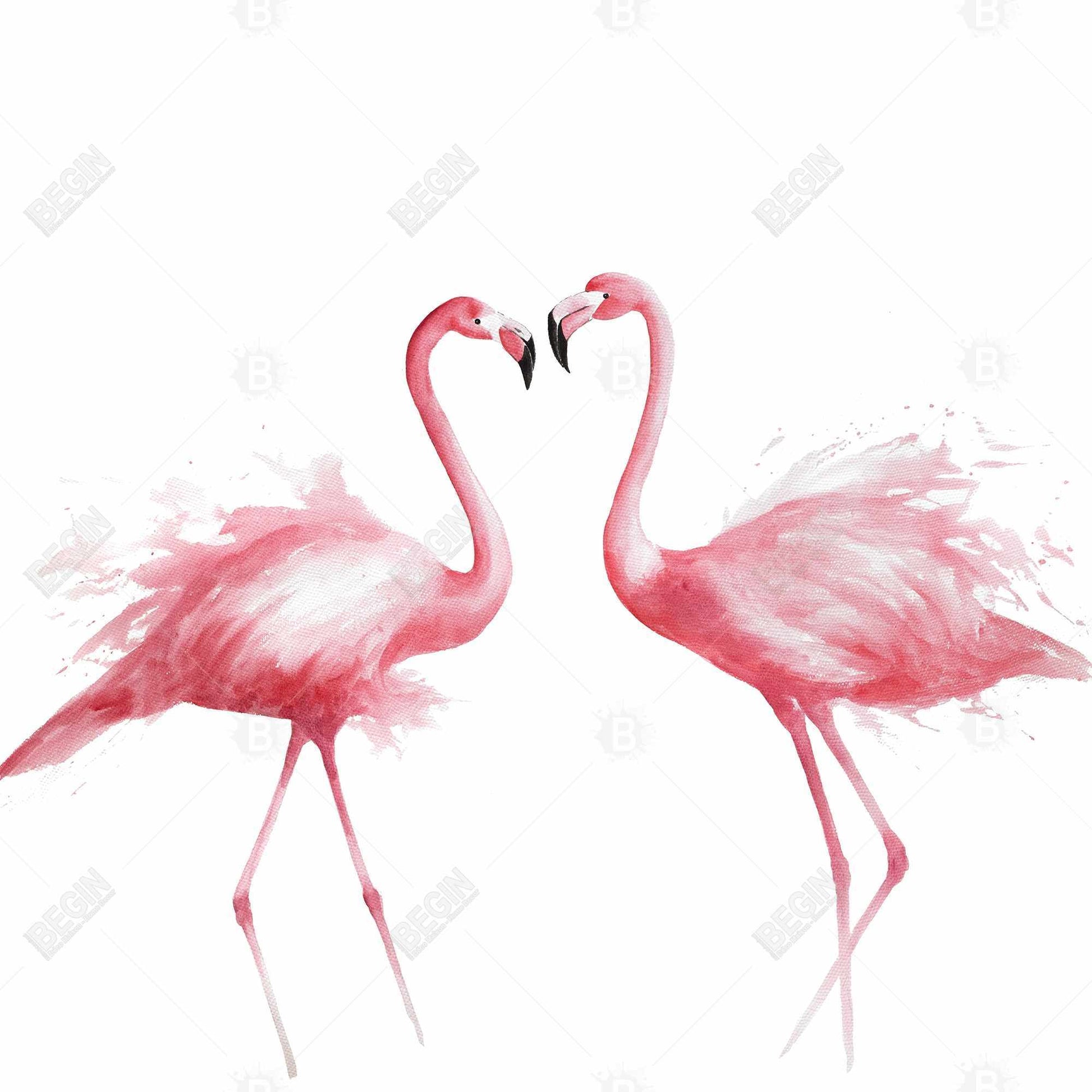 Toile aquarelle représentant deux flamants roses | Décoration de chambre à coucher