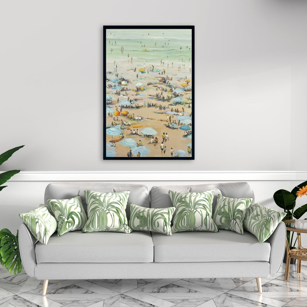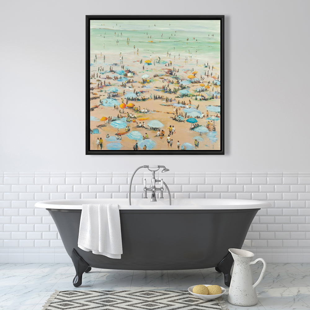 Toile encadrée contemporaine sur le thème de la mer côtière - Personnes à la plage