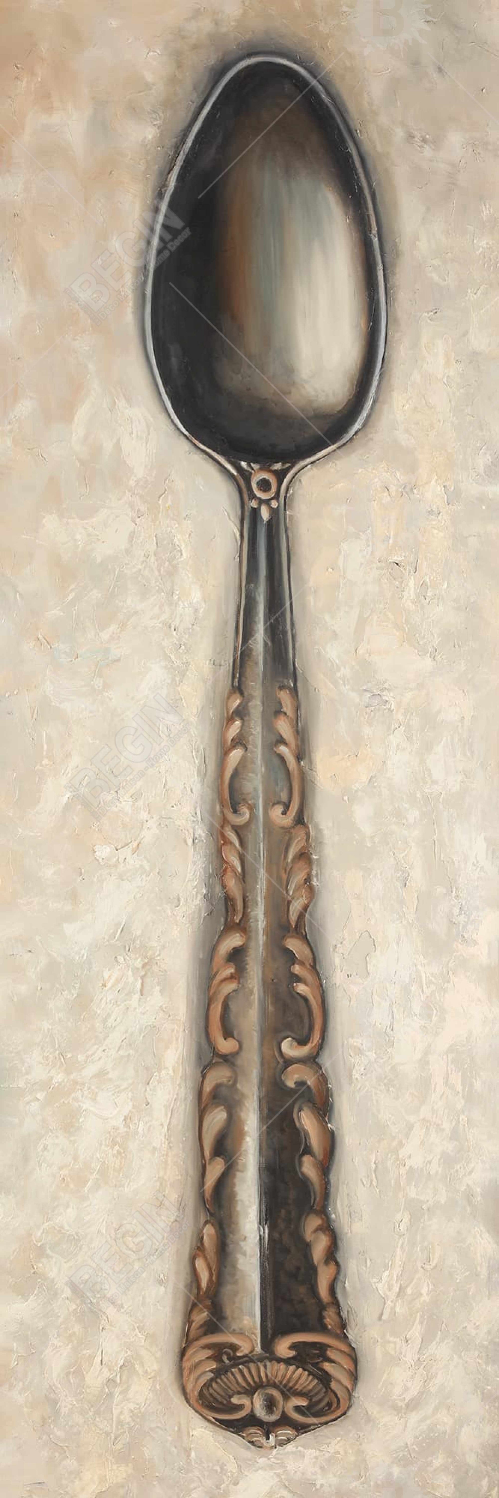 Toile vintage avec cuillère | Cadre marron | Décoration d'intérieur