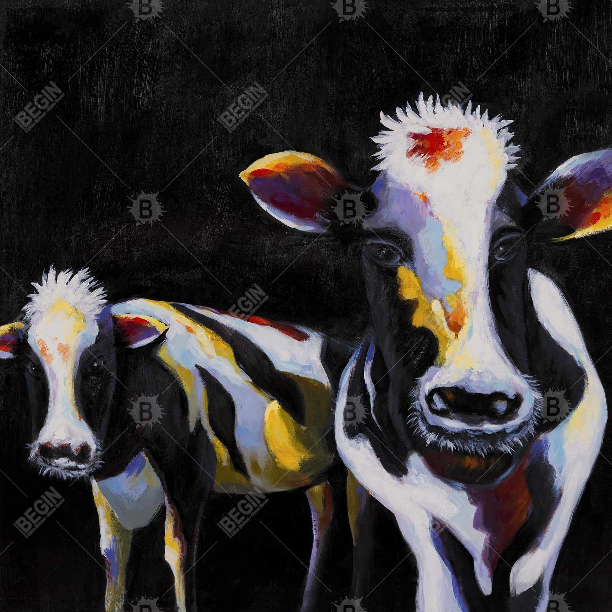 Toile encadrée « Deux vaches amusantes » - Décoration intérieure contemporaine blanche