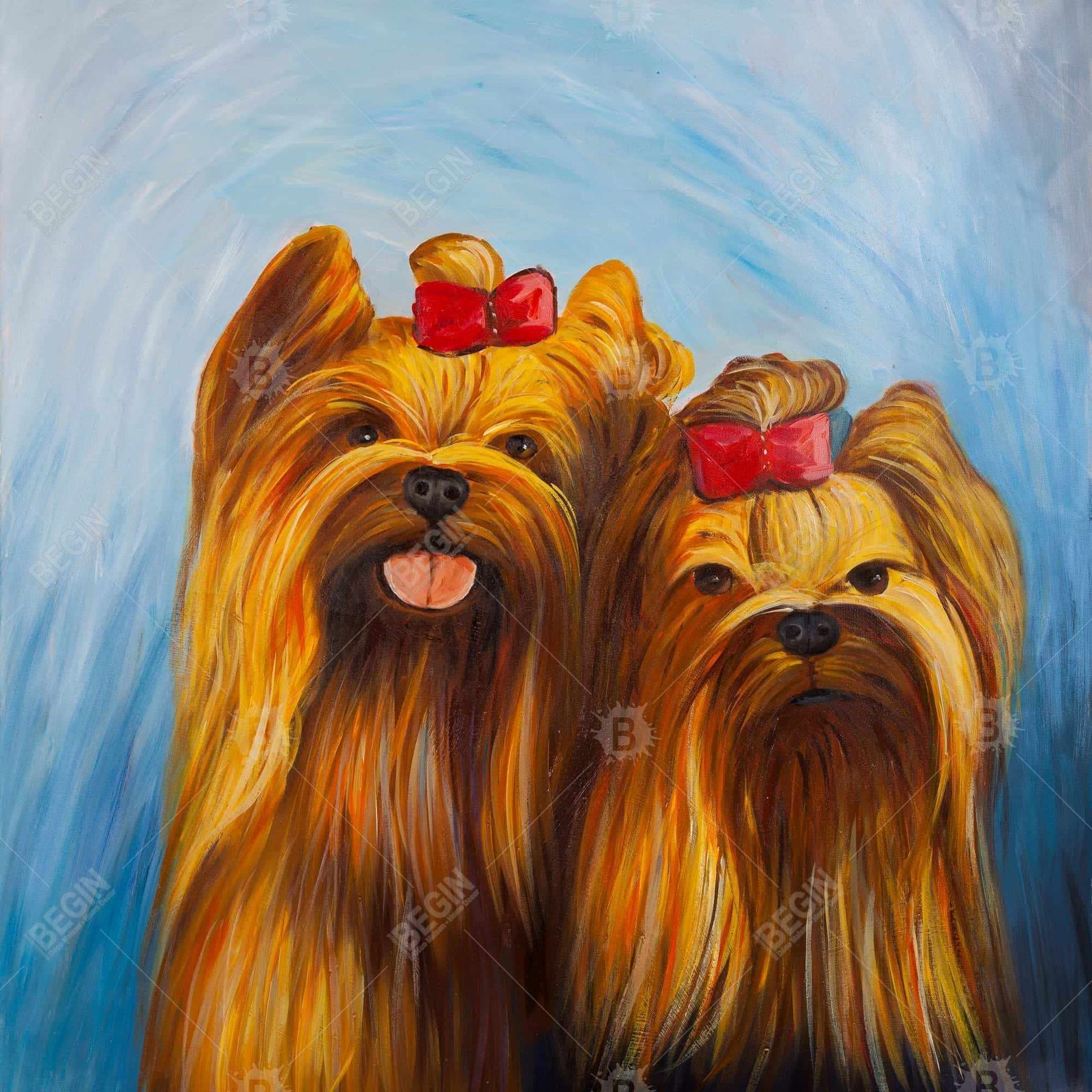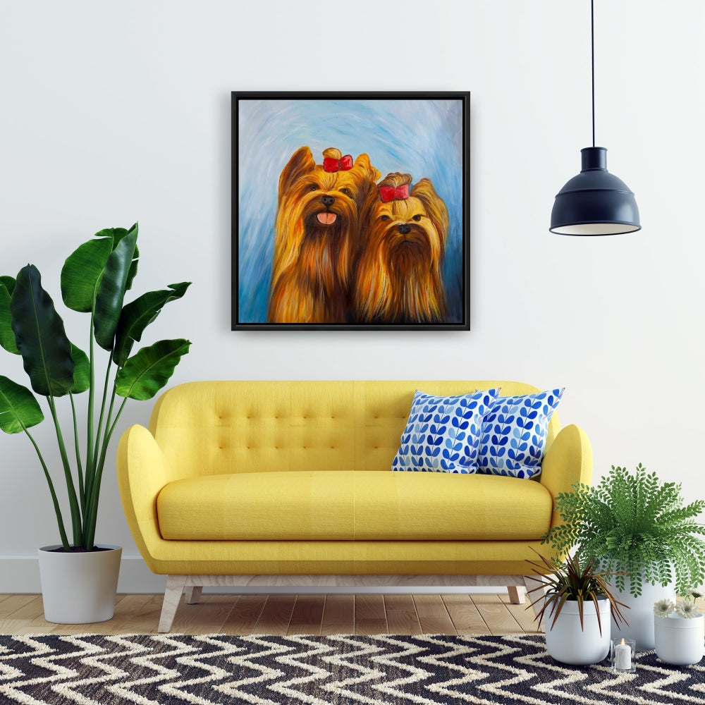 Toile encadrée « Deux chiens souriants avec nœud papillon » - Décoration d'intérieur
