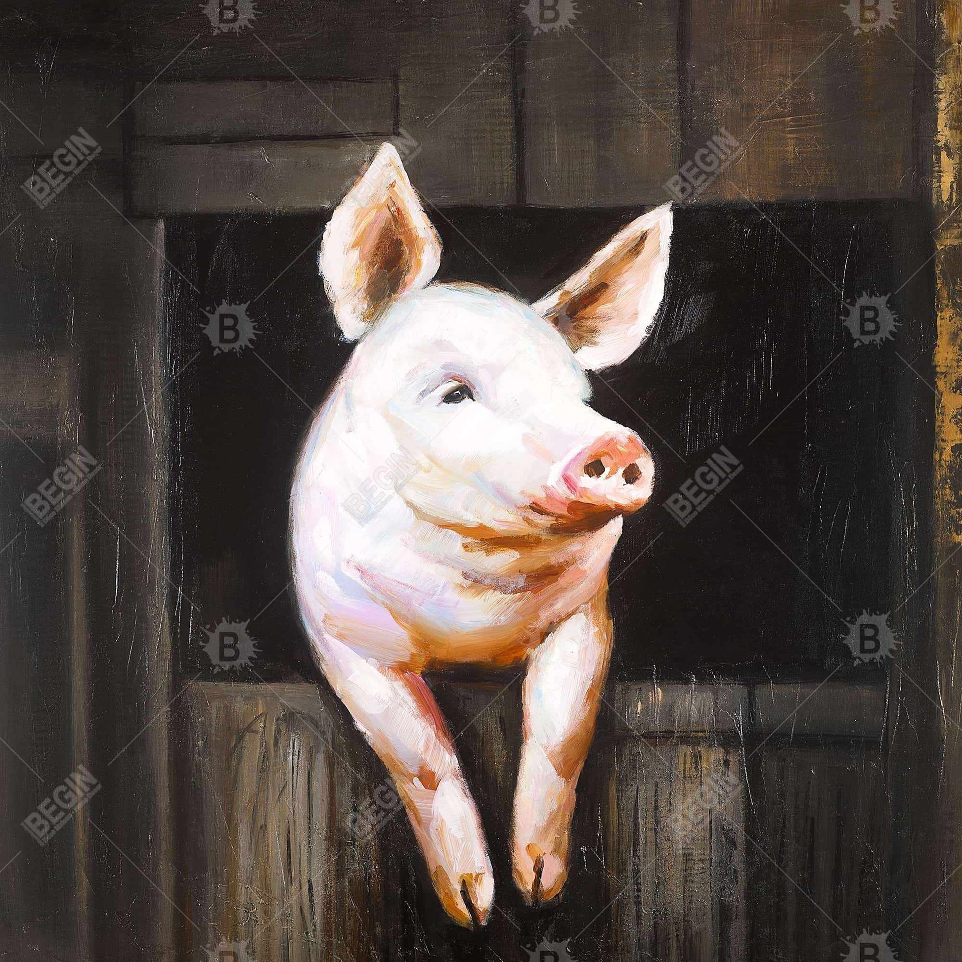 Toile encadrée marron « Cochon souriant » | Décoration d'intérieur avec animaux de la ferme