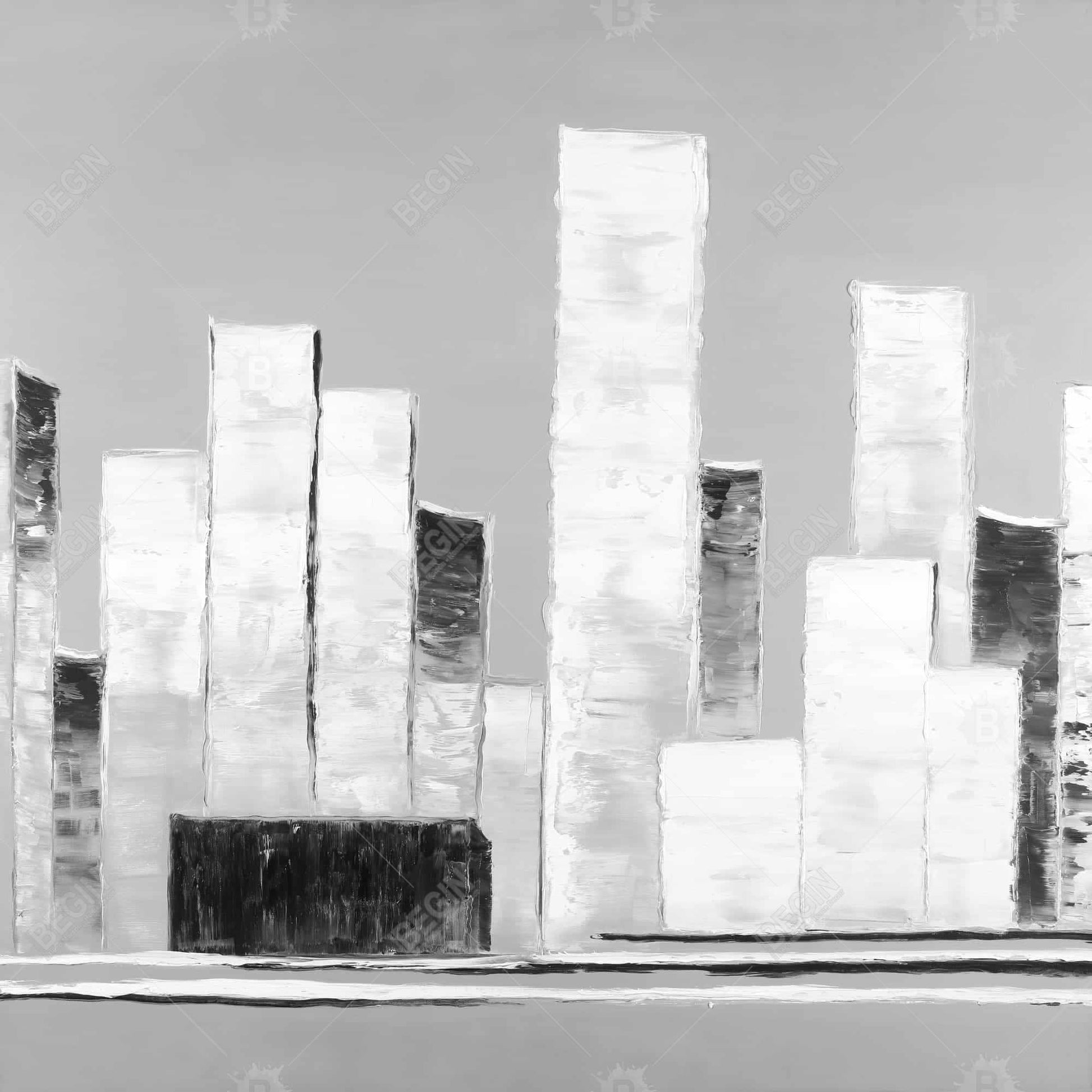 Toile abstraite en noir et blanc avec un bâtiment | Cadre blanc