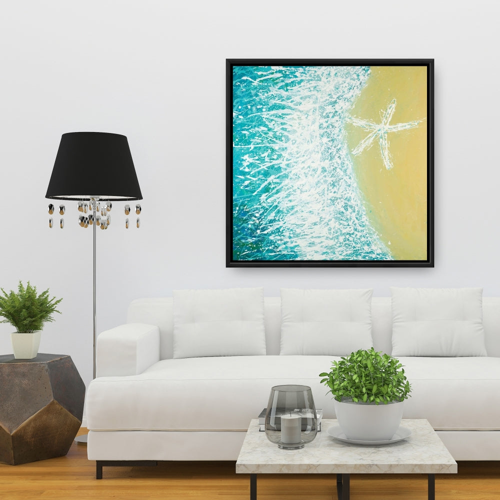 Toile turquoise contemporaine – Étoile de mer et vague | Décoration d'intérieur