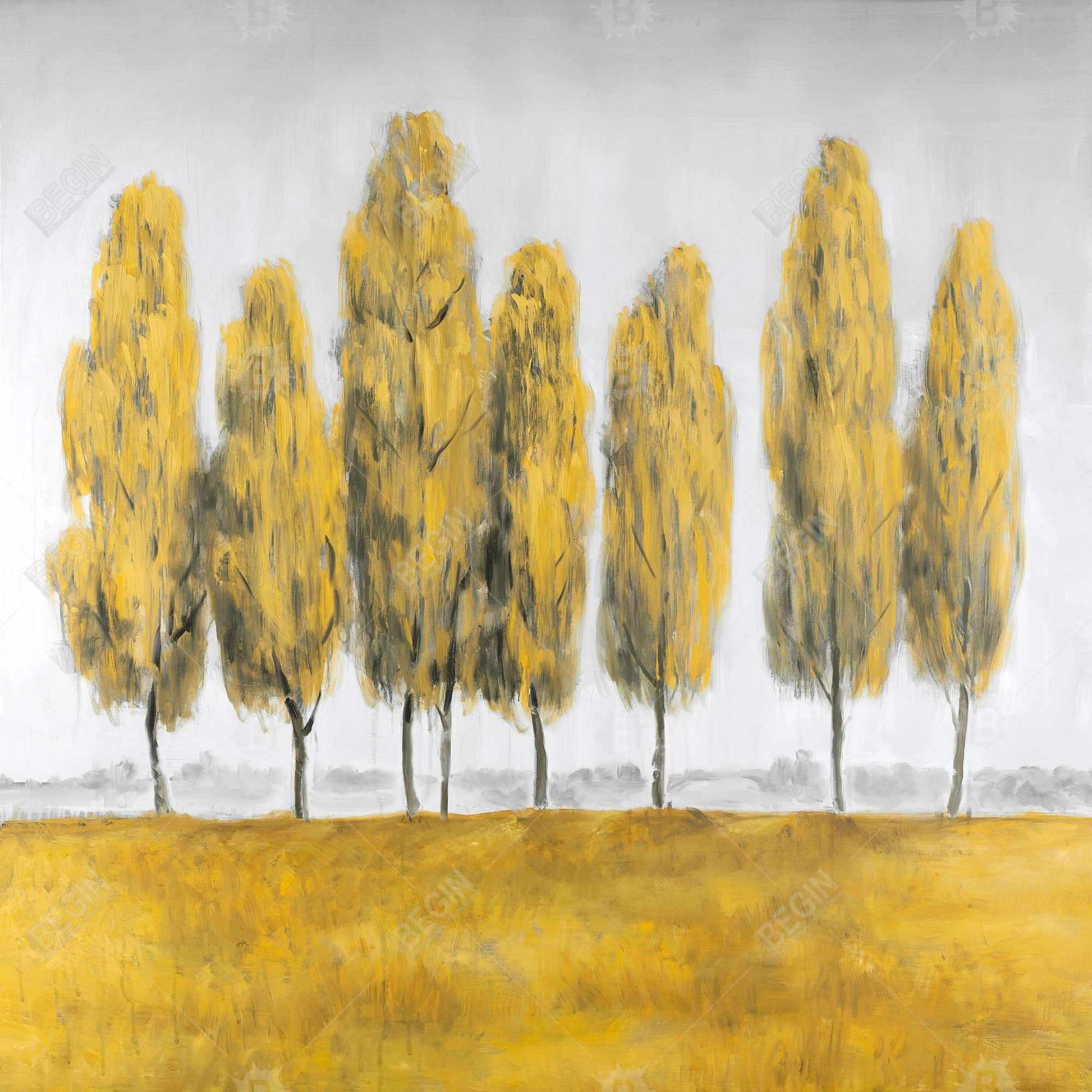 Toile abstraite d'arbres jaunes - Décoration de chambre contemporaine