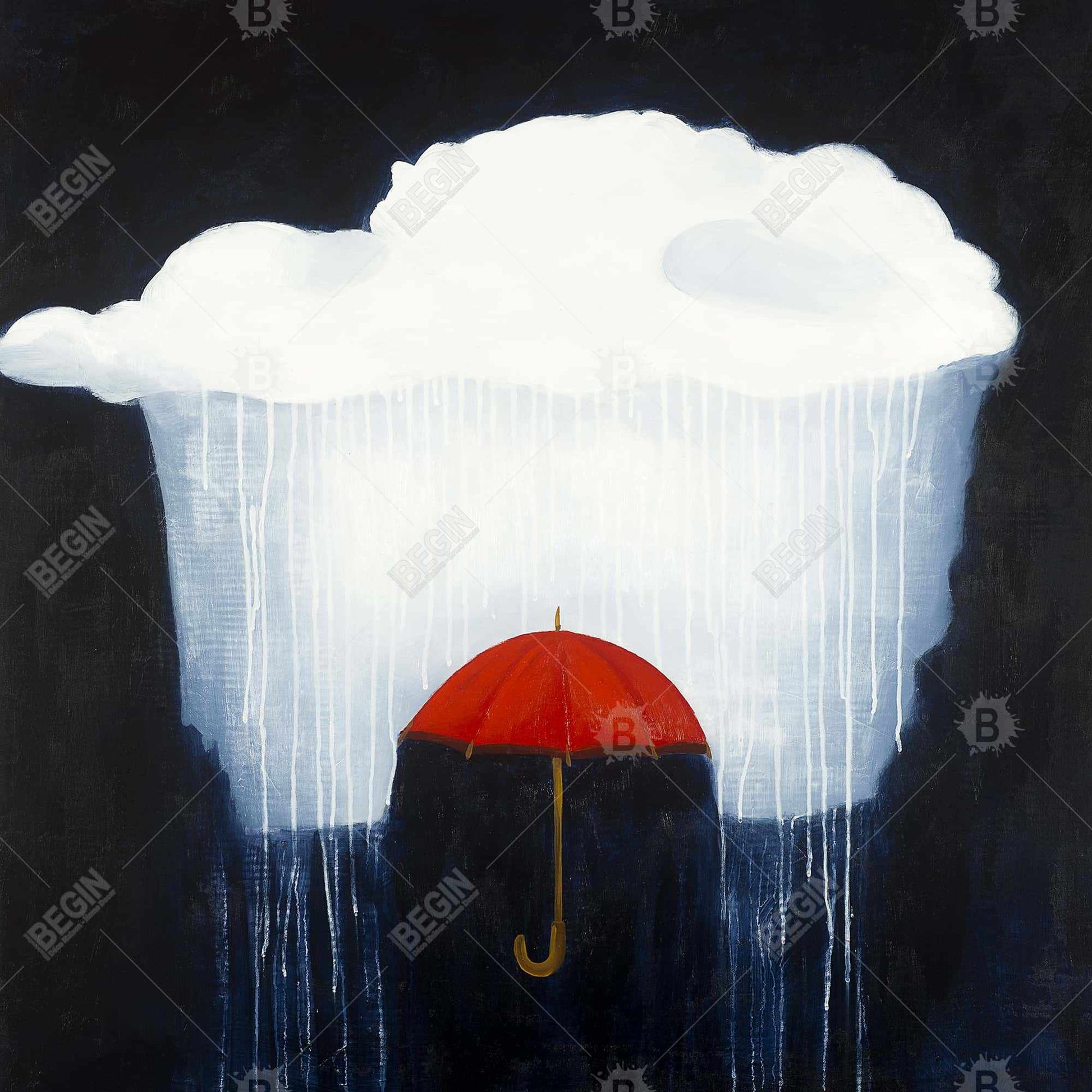 Toile romantique avec parapluie sous la pluie - Décoration murale pour chambre à coucher
