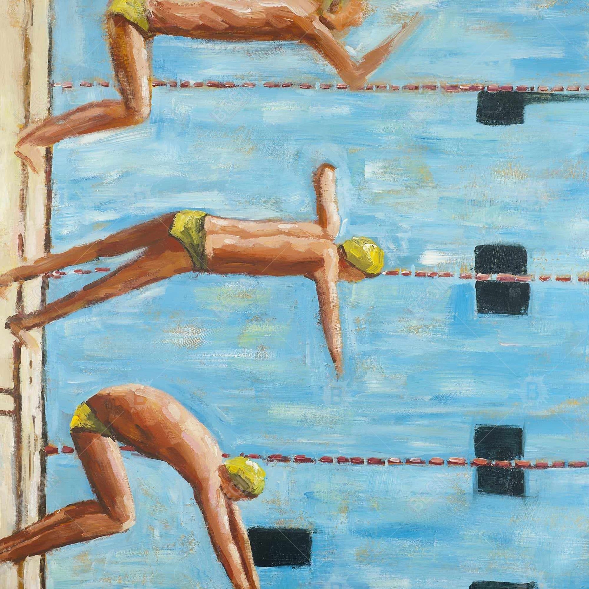 Toile encadrée bleue « Nageurs » – Décoration d'intérieur pour homme des cavernes