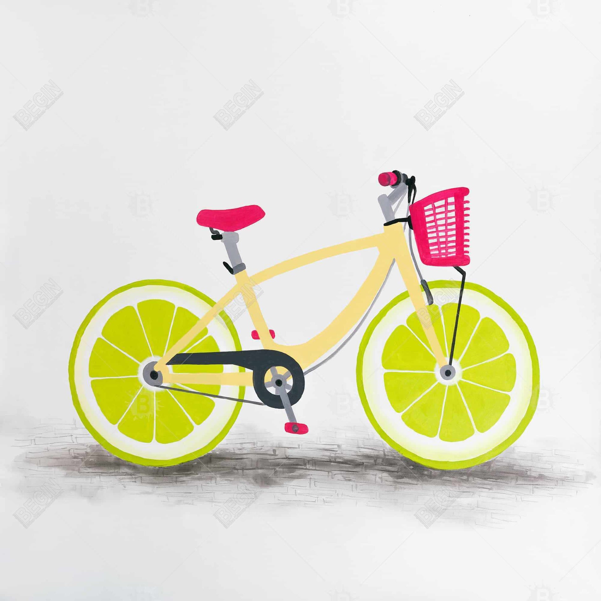 Toile « Vélo à roue de citron vert » | Décoration murale gastronomique pour chambre à coucher