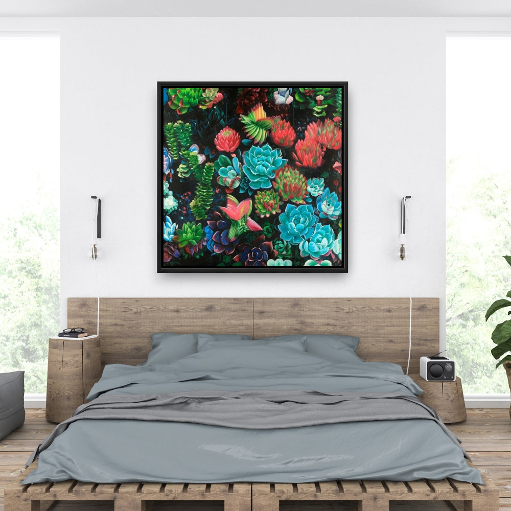 Toile colorée de plantes succulentes | Décoration murale botanique florale rose