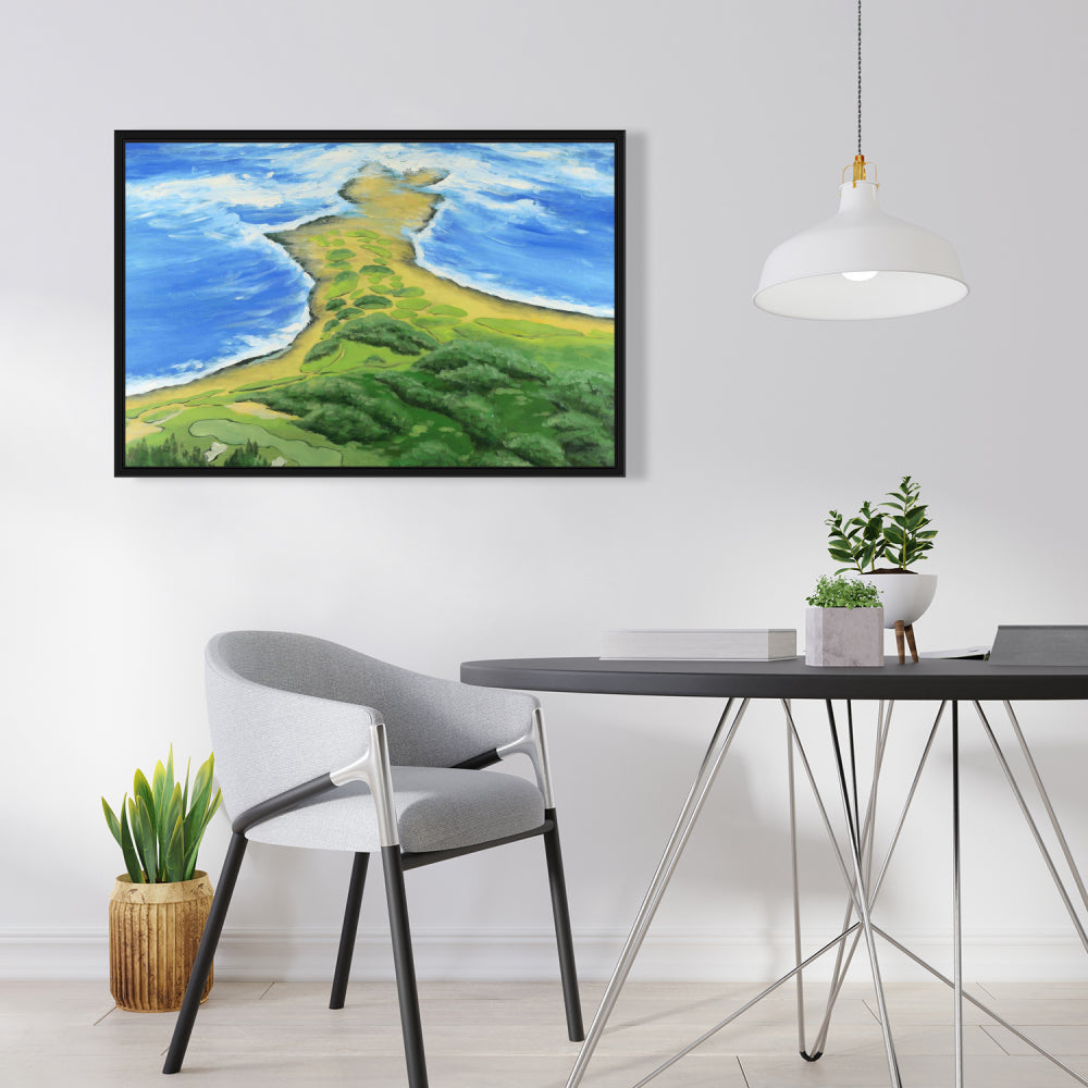 Toile encadrée bleue « Chambre pittoresque » | Décoration côtière sur terrain de golf