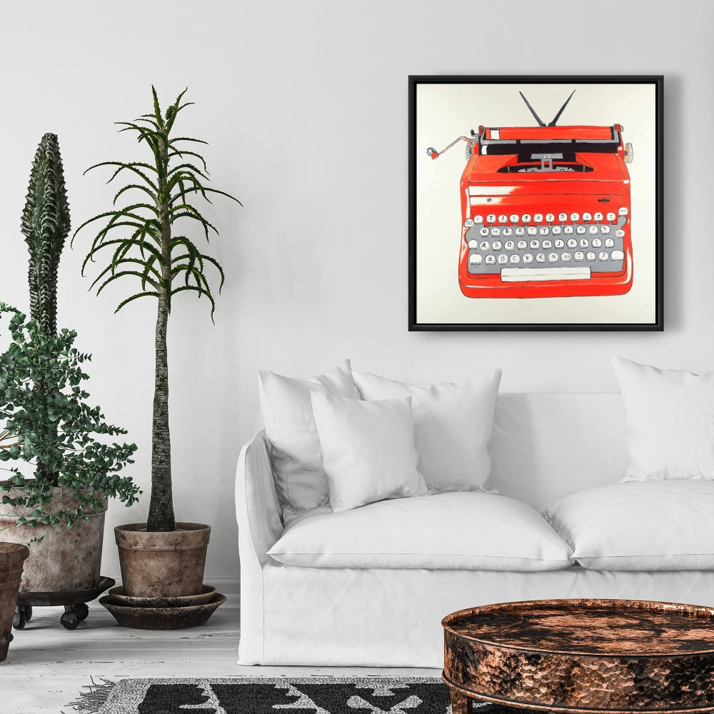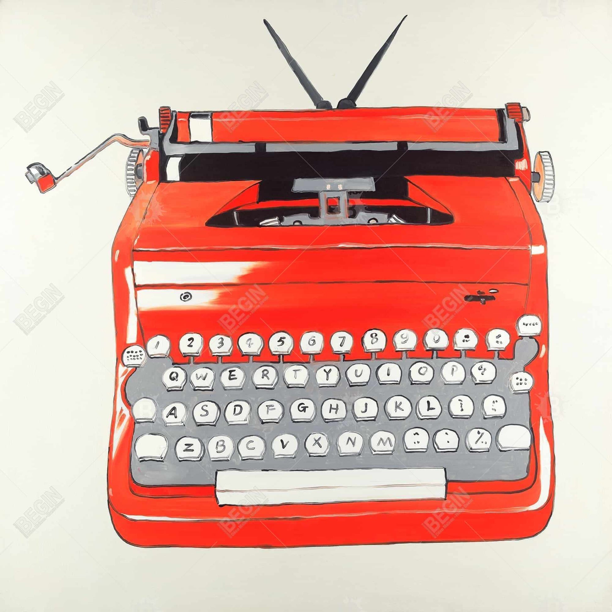 Toile vintage rouge représentant une machine à écrire | Décoration murale pour chambre