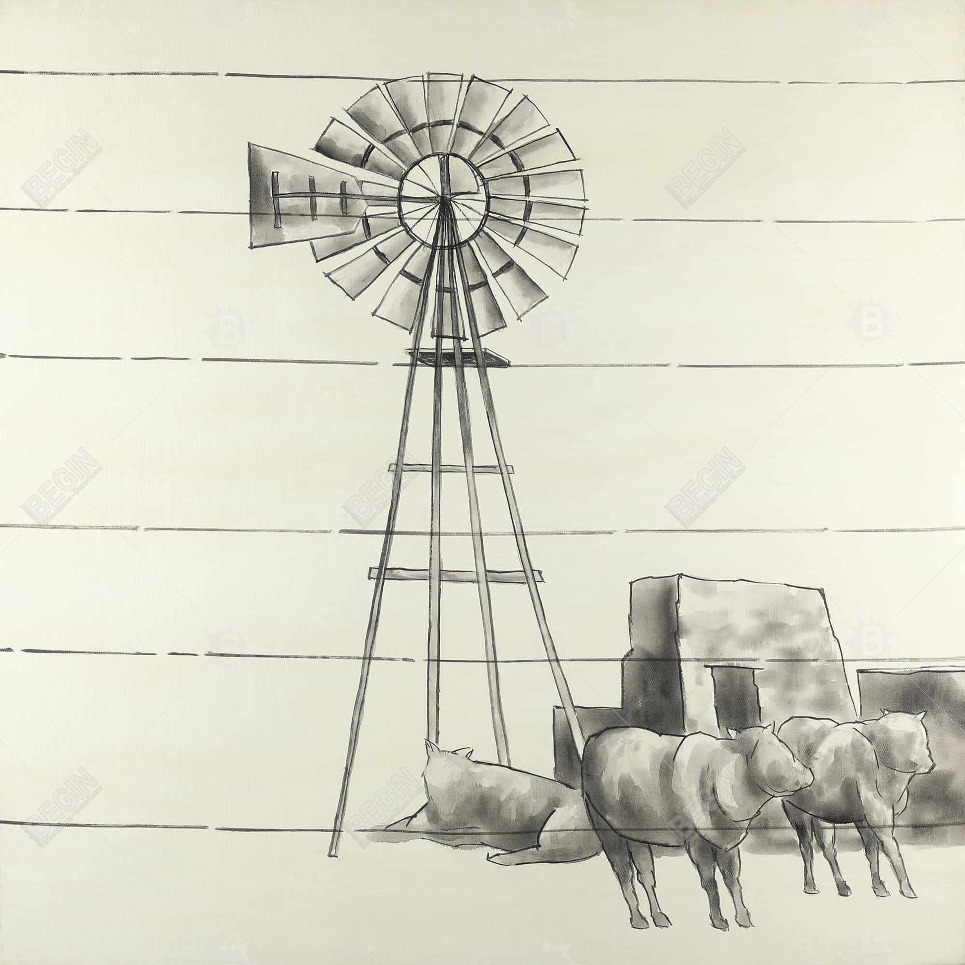 Toile vintage représentant un moulin à vent du Texas | Décoration d'intérieur encadrée grise