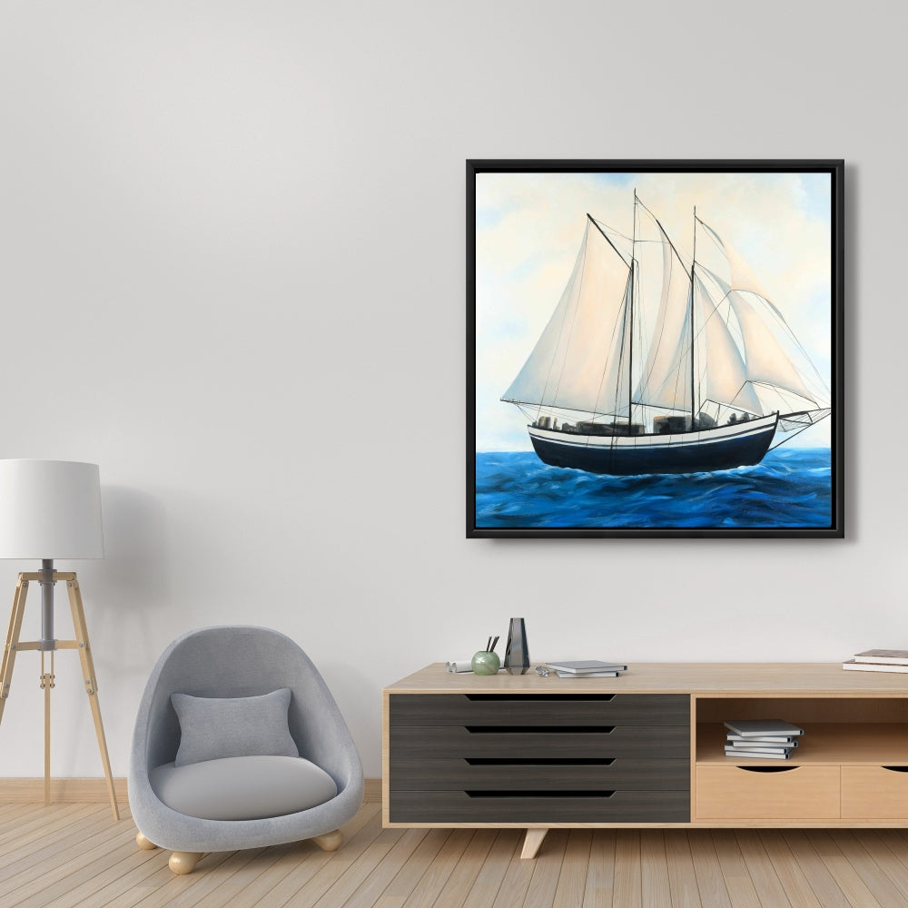 Toile encadrée bleue « Bateau côtier » - Voilier par une journée ensoleillée