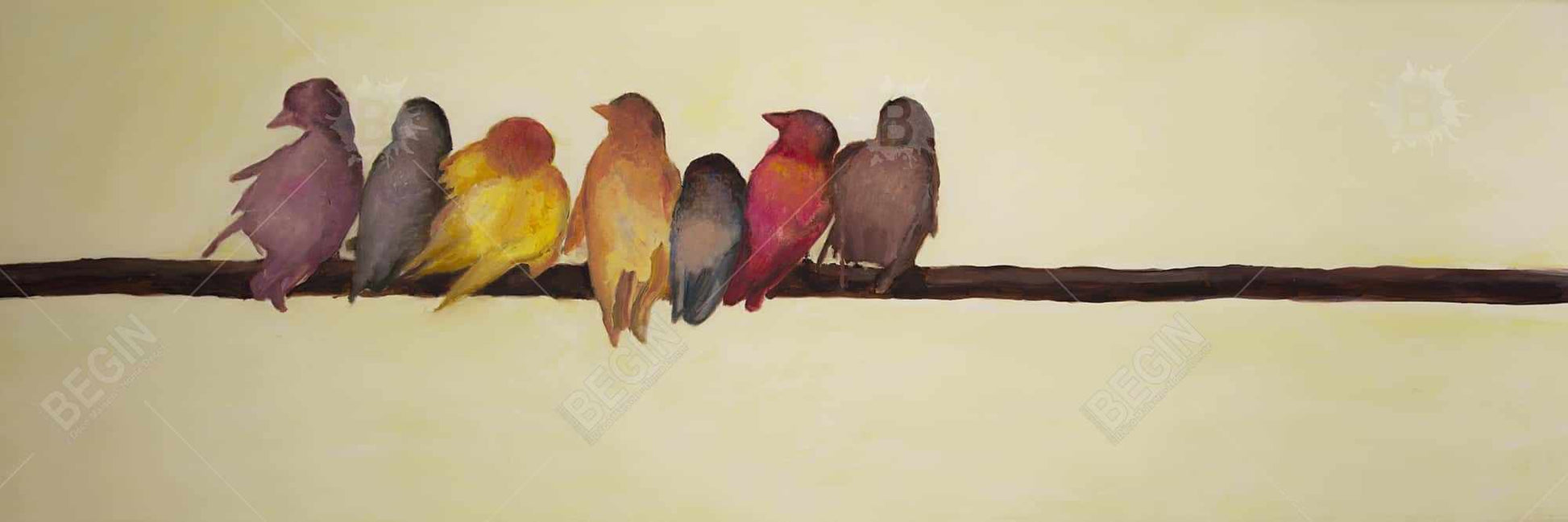 Toile encadrée jaune contemporaine représentant une famille d'oiseaux | Décoration d'intérieur