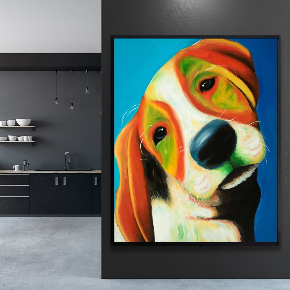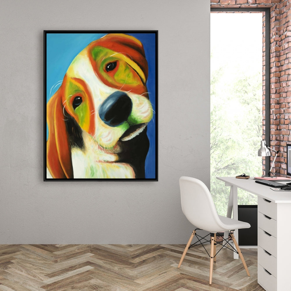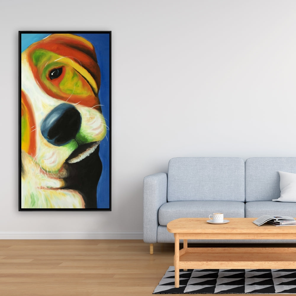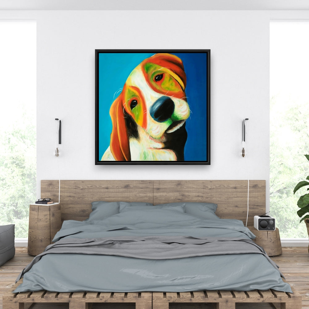 Toile encadrée bleue représentant un chien Beagle coloré | Décoration d'intérieur