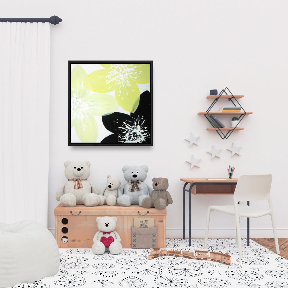 Fleurs jaunes au centre blanc | Toile encadrée pour décoration d'intérieur
