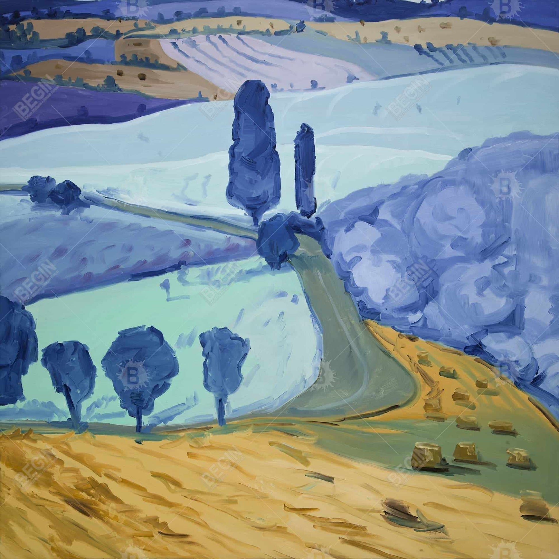 Toile panoramique avec arbres des champs de Toscane | Décoration d'intérieur
