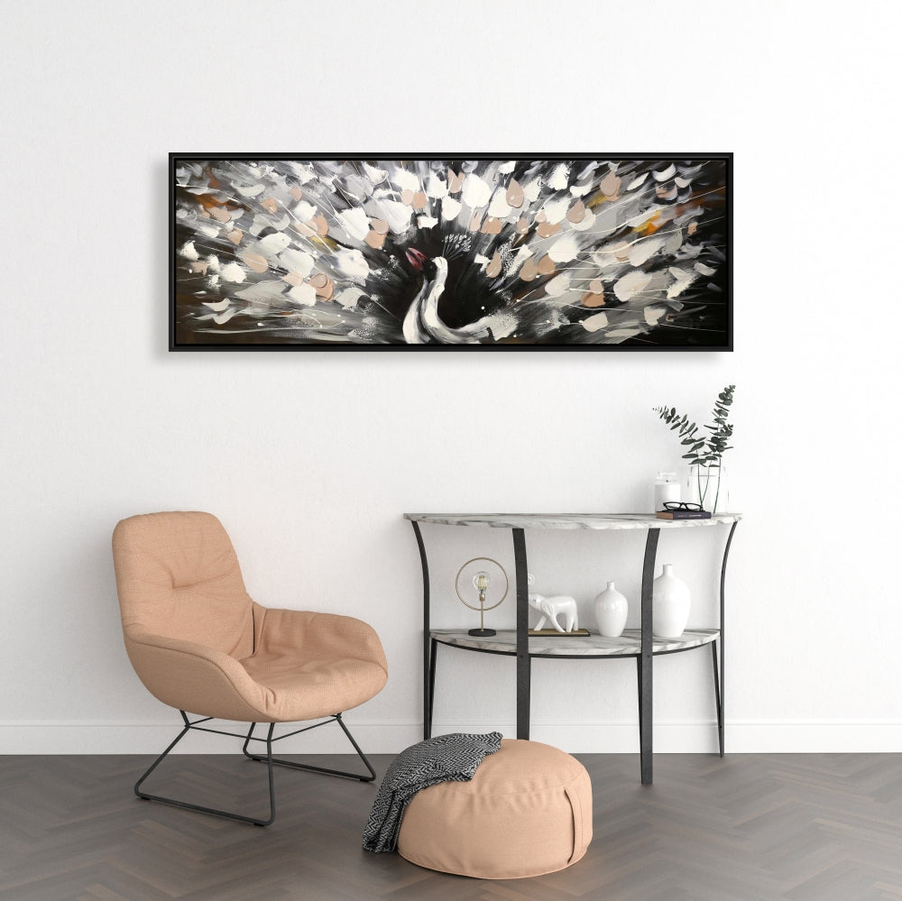 Sublimez votre décoration intérieure avec la toile encadrée contemporaine « Paon abstrait tacheté ». Cette œuvre exquise capture l'élégance du paon à travers un motif abstrait moderne, ajoutant une touche de sophistication à n'importe quelle chambre. Les couleurs vibrantes et les détails complexes des plumes tachetées créent un effet visuel saisissant qui attire le regard, en faisant un point focal idéal pour votre espace de vie. Fabriquée avec des matériaux de haute qualité, cette toile encadrée garantit durabilité et longévité. Son style contemporain s'intègre parfaitement à divers styles de décoration, du minimaliste à l'éclectique. Idéale pour les amoureux des oiseaux et les amateurs d'art, la toile « Paon abstrait tacheté » est un ajout unique qui sublimera l'ambiance de votre chambre. Facile à accrocher et à entretenir, cette œuvre d'art est un moyen simple d'insuffler une touche artistique à votre intérieur. Transformez votre espace avec cette œuvre murale captivante, conçue pour inspirer et ravir. Commandez dès maintenant et découvrez la beauté intemporelle de ce chef-d'œuvre contemporain.
