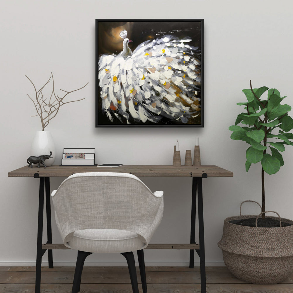 Toile encadrée abstraite représentant un paon - Décoration murale pour la maison