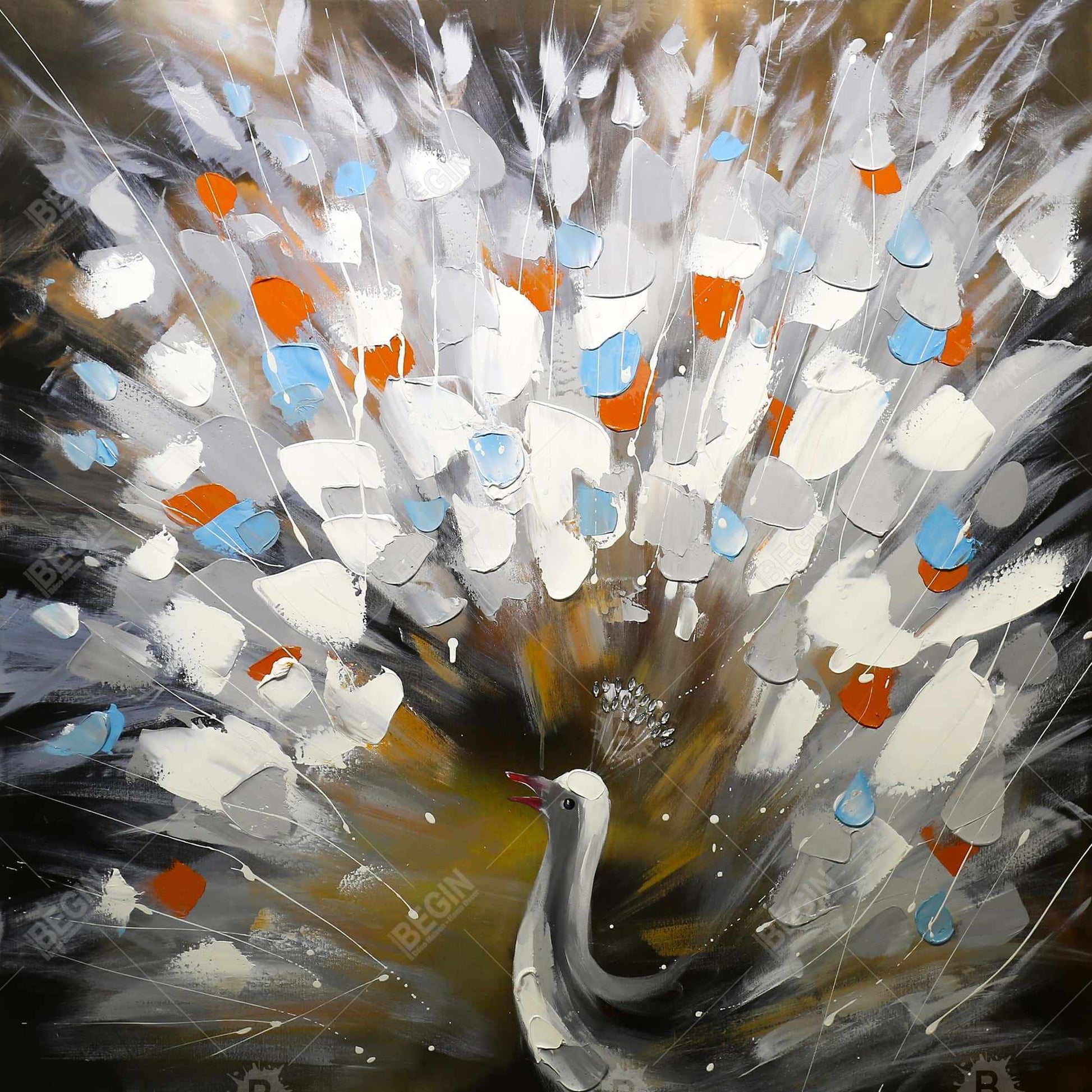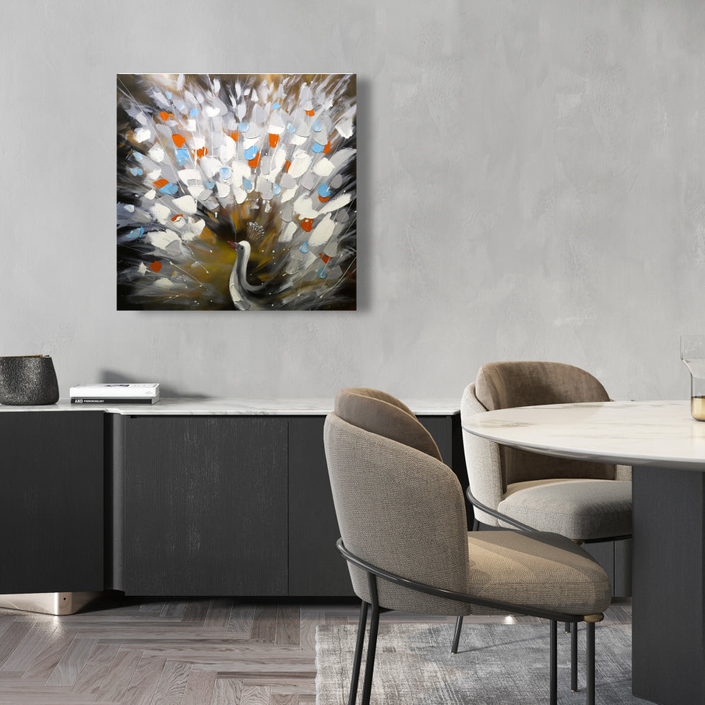 Toile abstraite de paon | Décoration murale de chambre à coucher avec animaux bleus