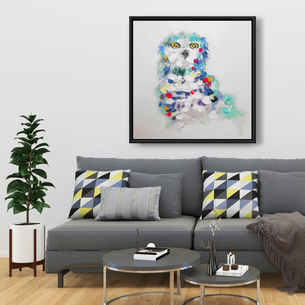 Toile abstraite représentant un hibou – Art contemporain bleu encadré