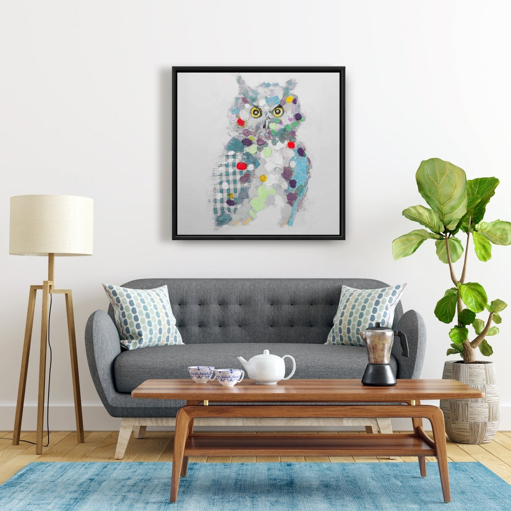 Toile encadrée texturée motif hibou abstrait | Décoration murale de chambre