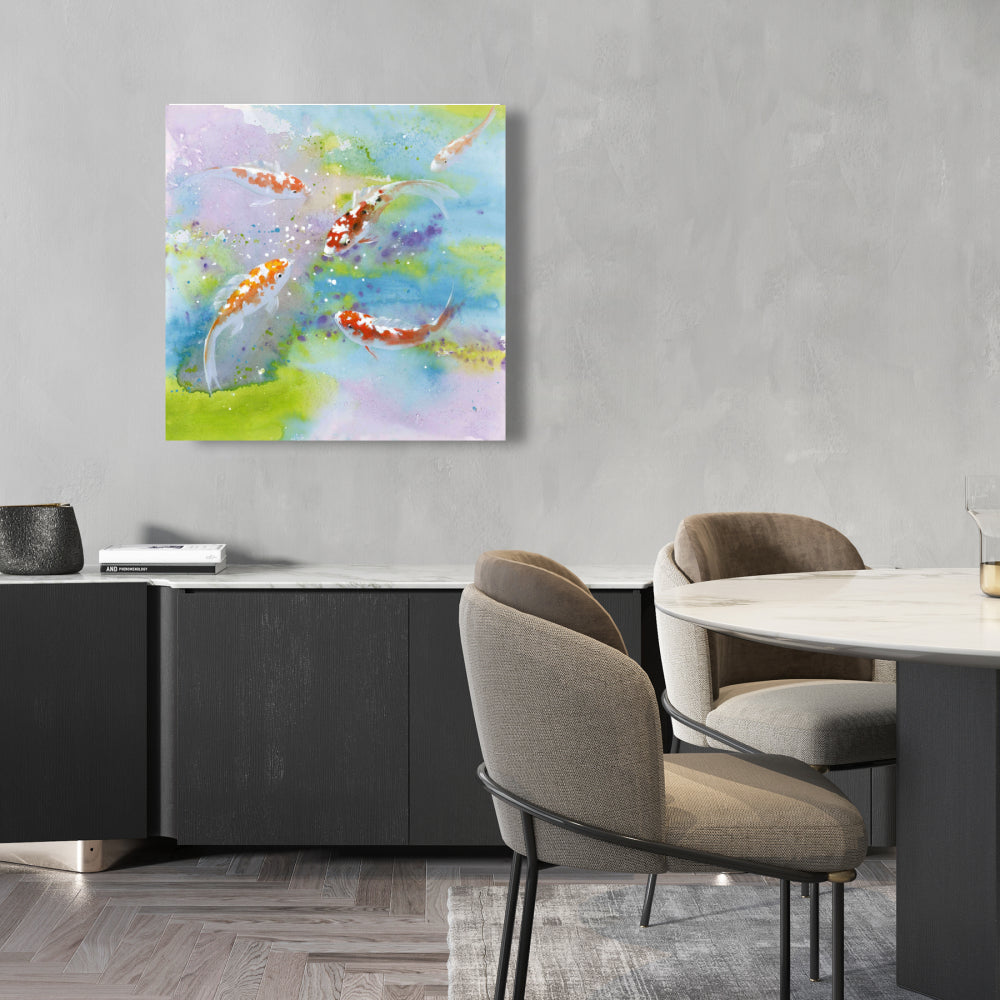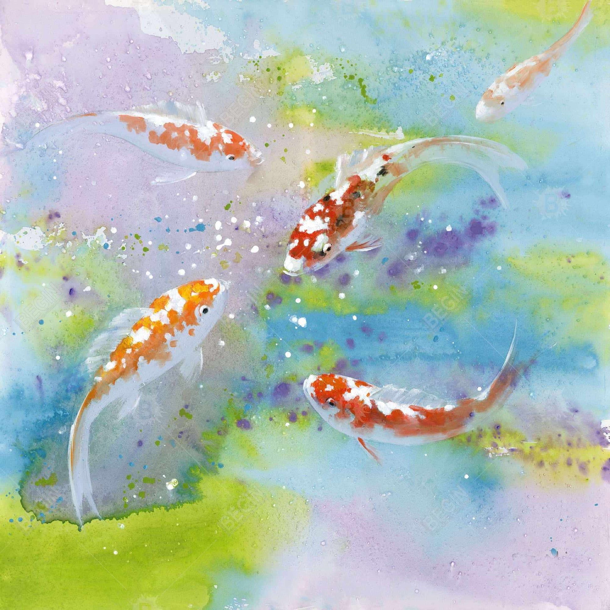 Toile bleue asiatique - Quatre carpes koï nageant | Décoration de chambre