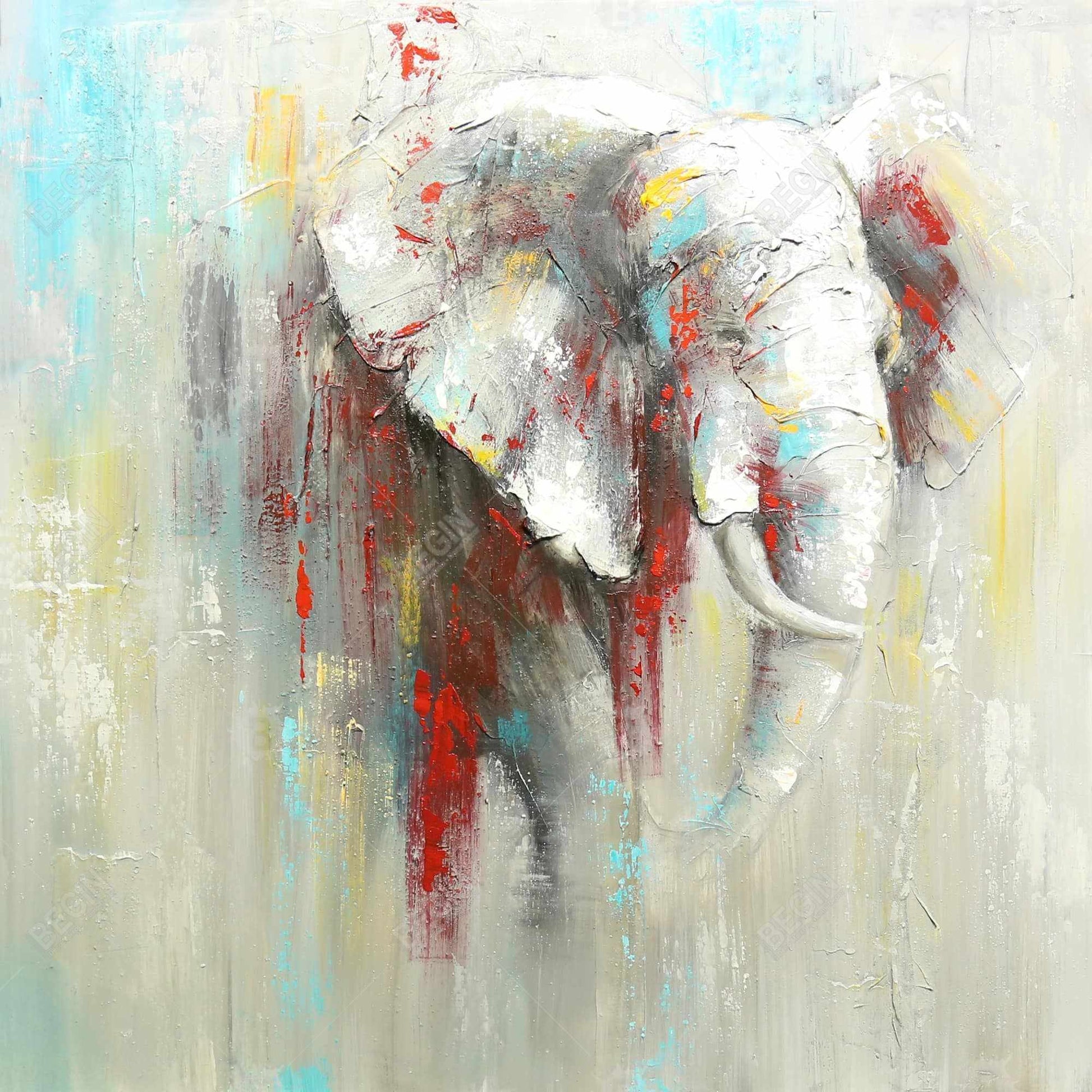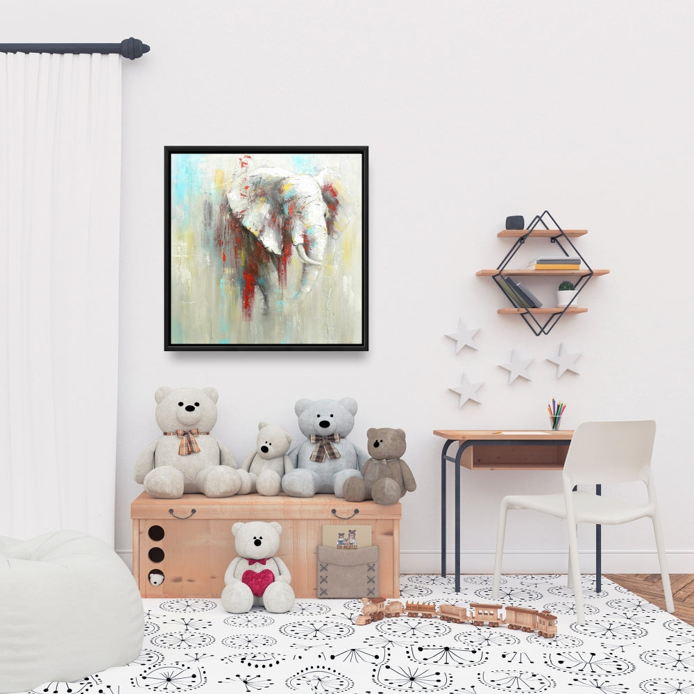 Toile abstraite représentant un éléphant - Décoration de chambre, art animalier encadré