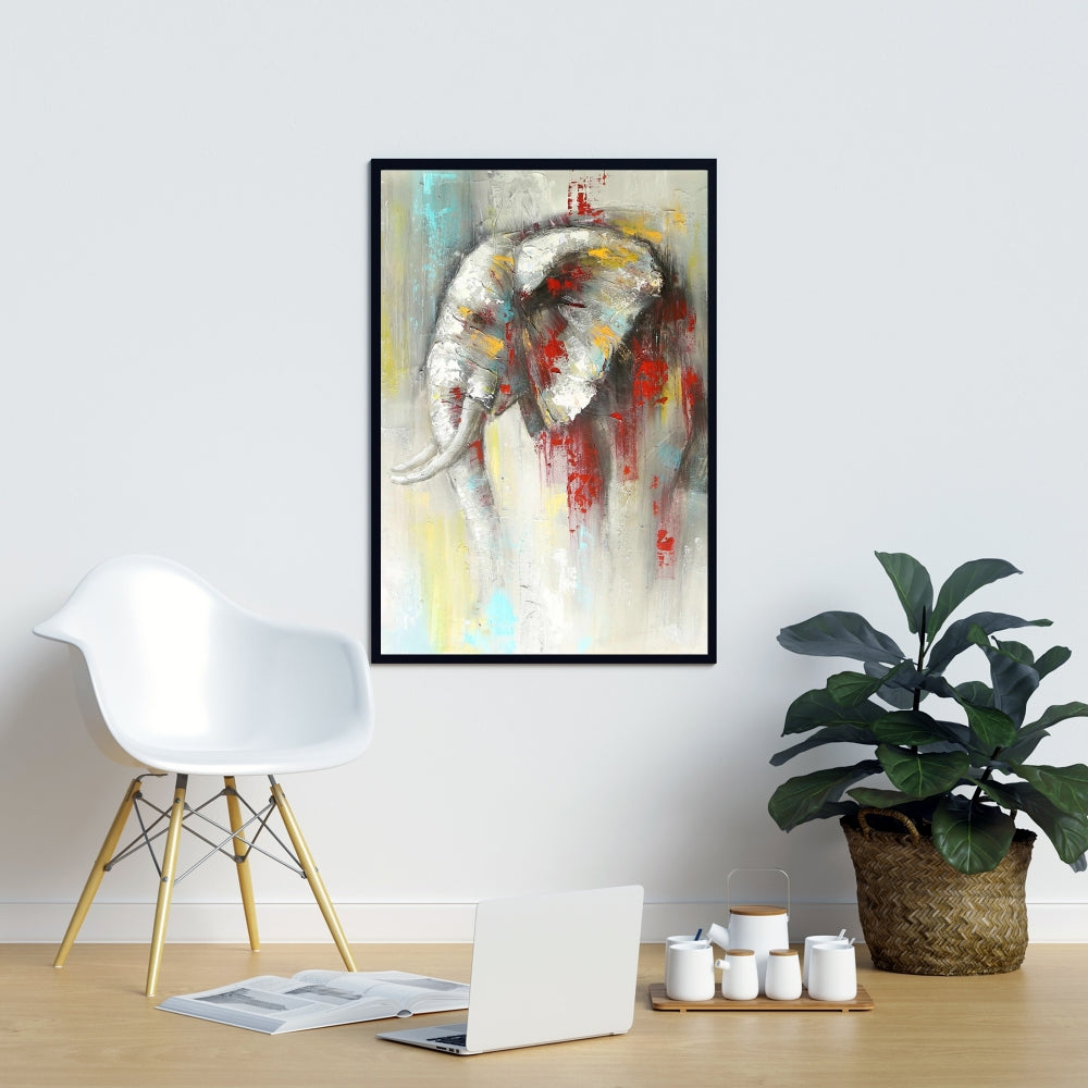Éléphant abstrait avec éclaboussures de peinture – Décoration de chambre rouge sur toile
