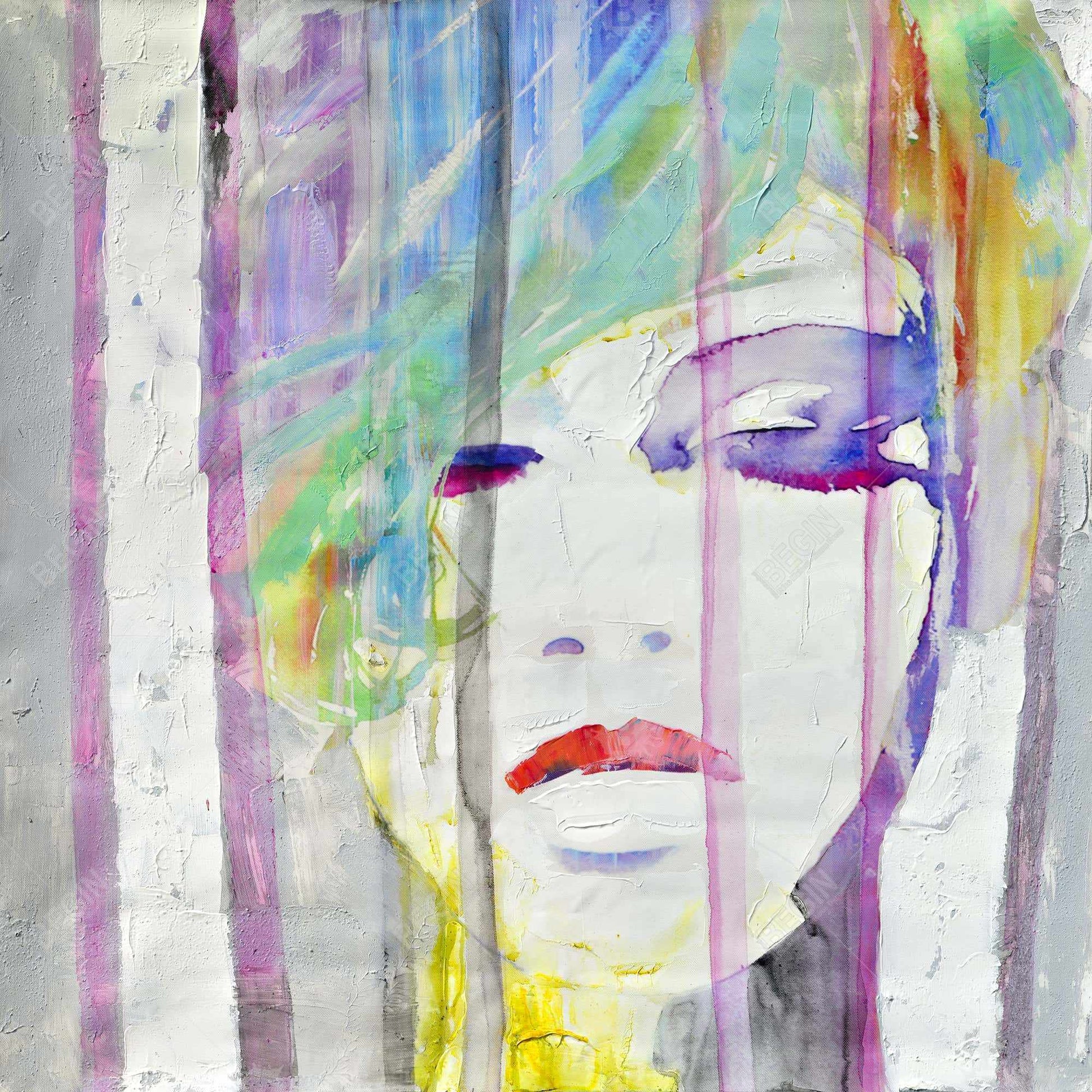 Portrait abstrait et coloré | Toile encadrée grise | Décoration d'intérieur