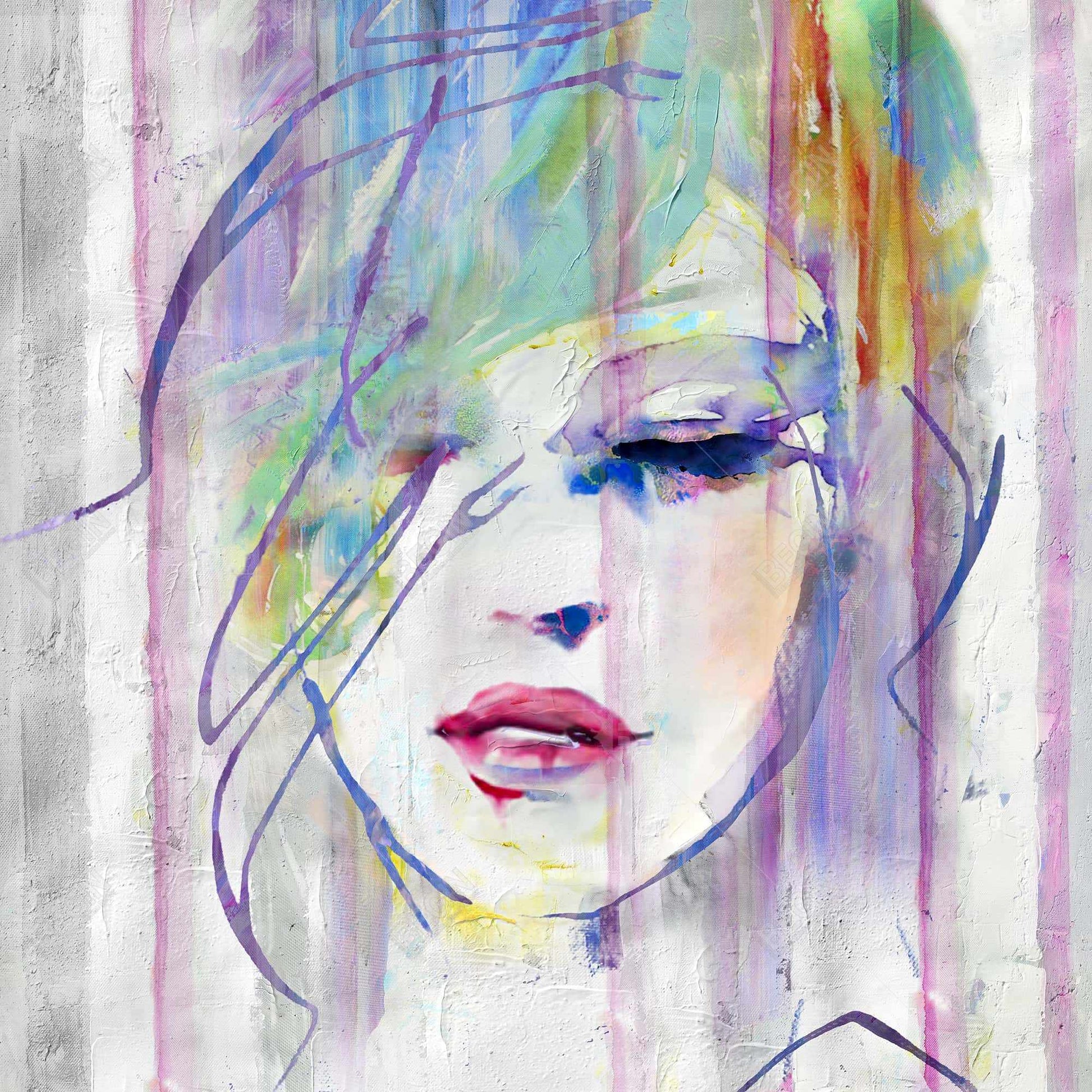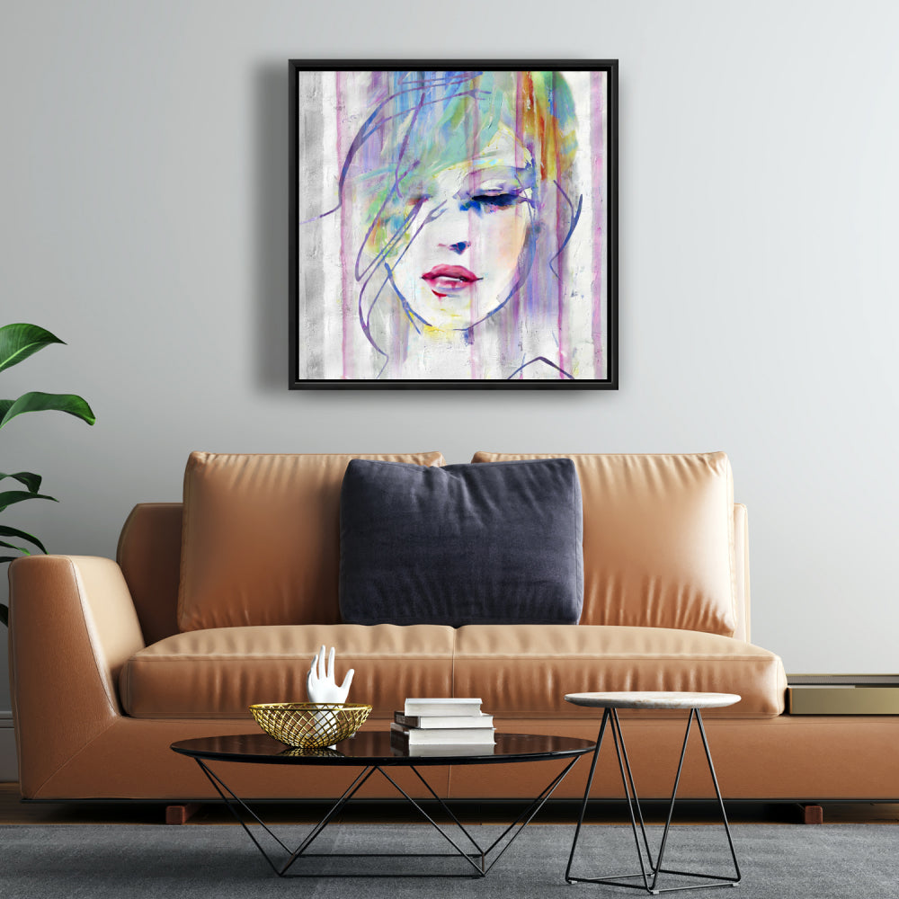 Toile figurative abstraite représentant une femme belle – Décor encadré gris