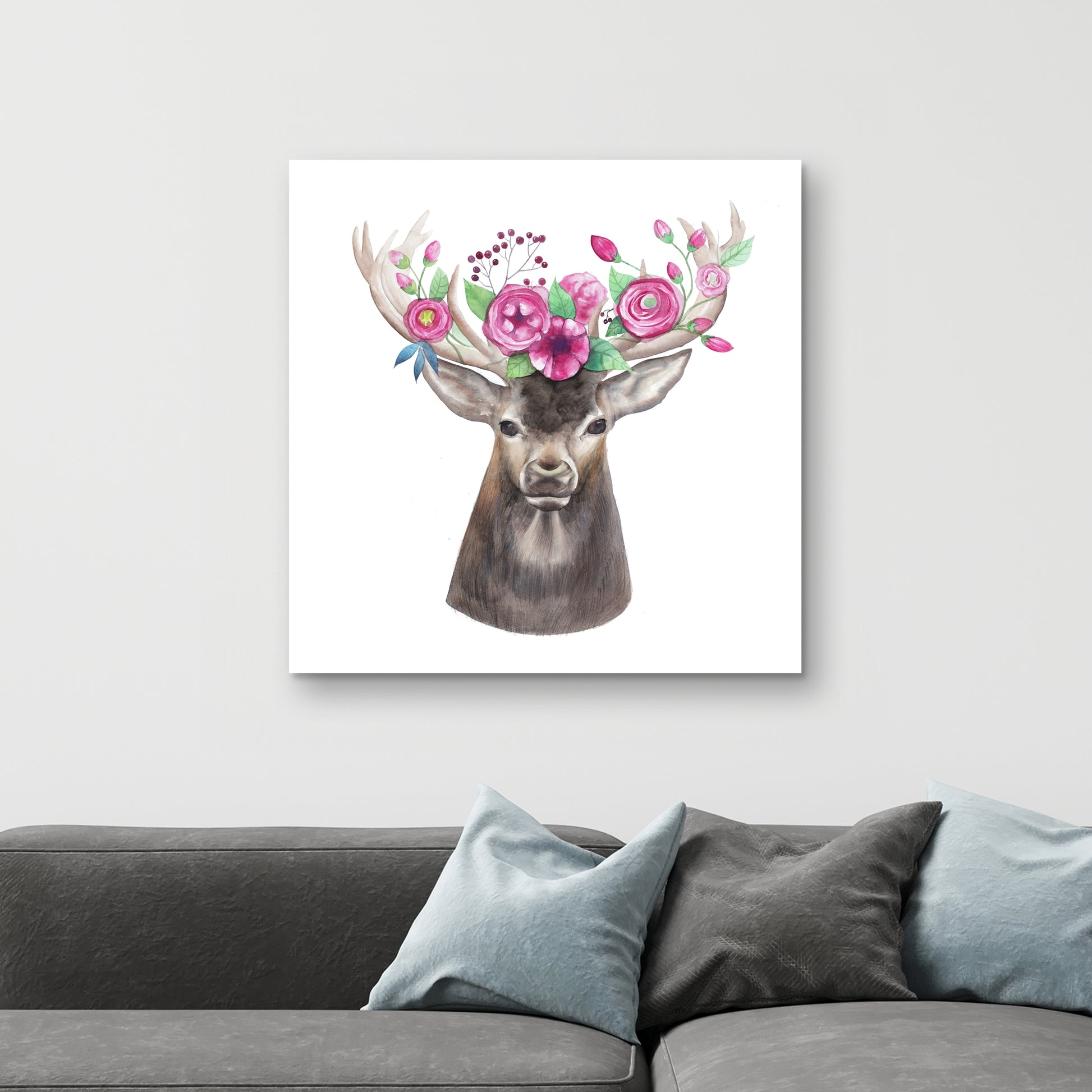 Toile romantique « Cerf brun » – Décor tête de cerf avec fleurs