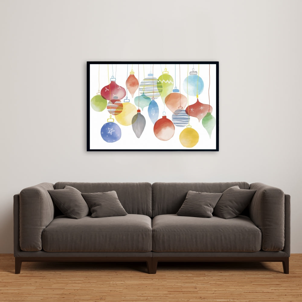 Toile Boules de Noël | Décoration murale encadrée bleue pour cuisine